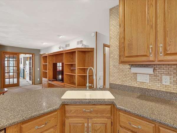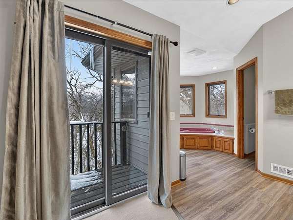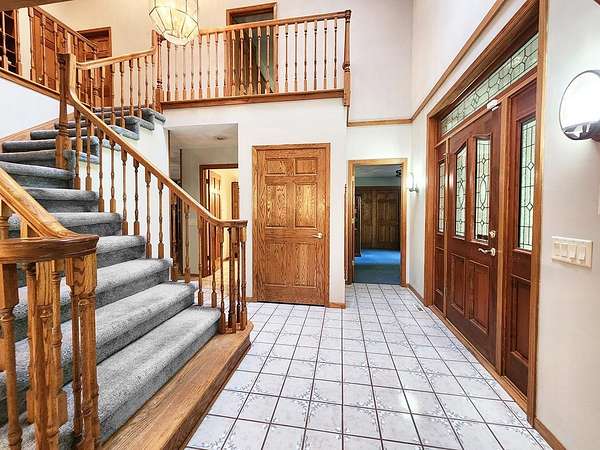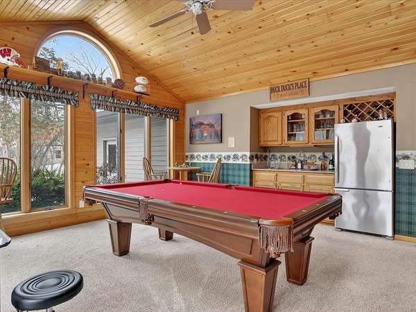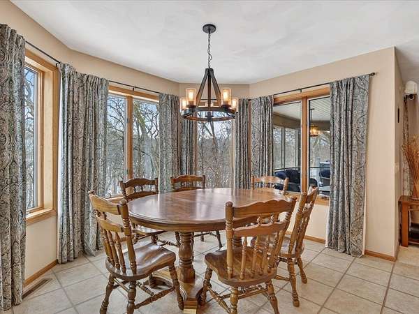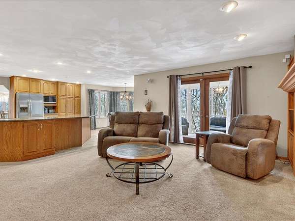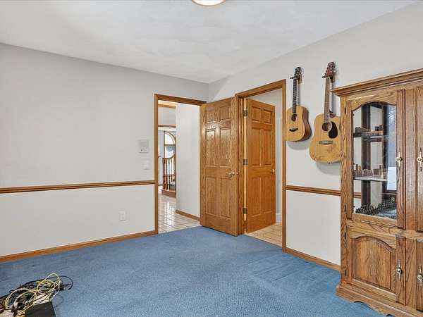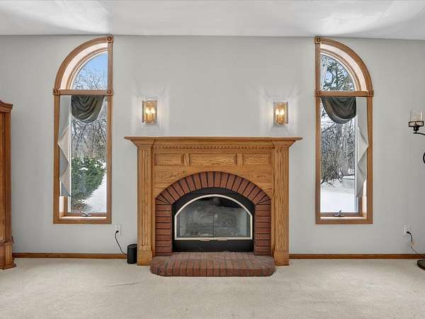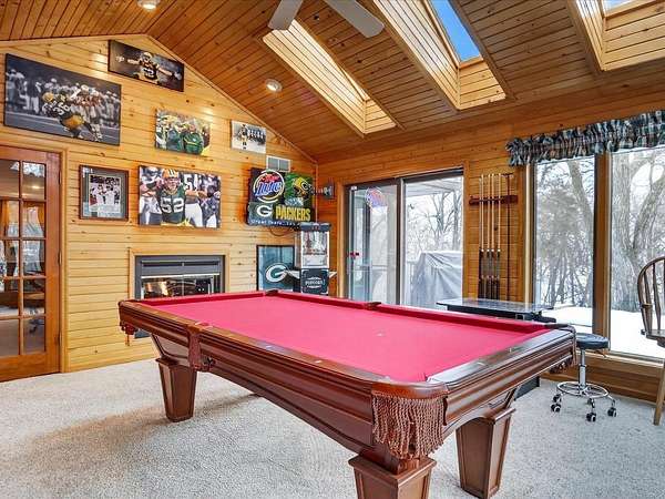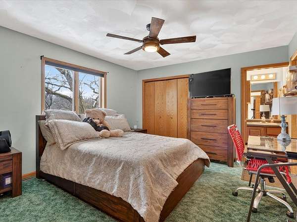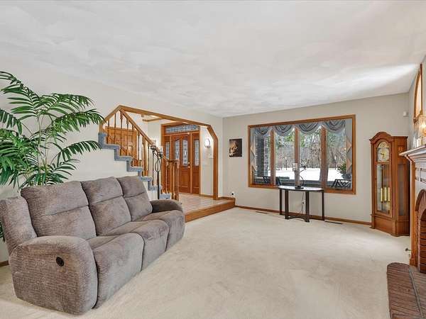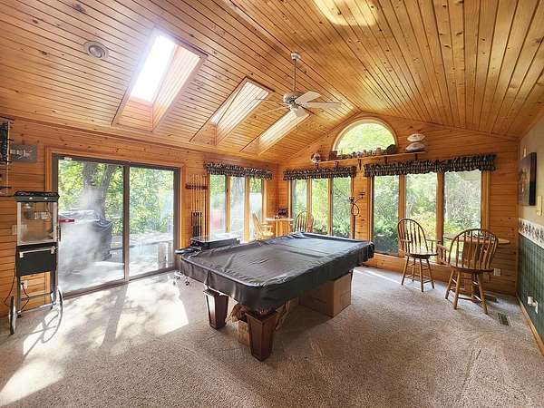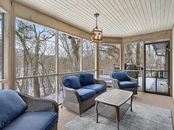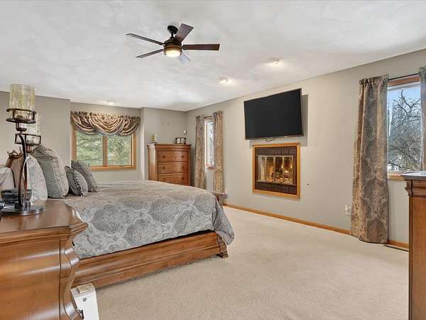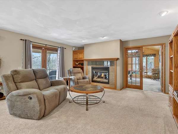 Executive 4,500+ sq ft home on 2.56 wooded acres. Welcoming brick front porch invites guests into foyer. Entry office or ensuite has connected full bathroom. Layout features sunken living room w/ fireplace, formal dining w/ inviting window seat, & open kitchen w/ dinette. Cozy den w/ screened porch access & 2-sided fireplace connects sunroom w/ wet bar & deck access. Main level laundry room has entrance to oversized 3.5 car garage. Owner's suite has barreled ceiling, wall fireplace, walk-in closet, private deck, updated bathroom w/ double sinks, corner whirlpool tub & separate shower. Bedrooms 3 & 4 have private vanities w/ adjoining bathroom. Finished lower-level w/ exposed walkout, family & bonus rooms, walk-in gun closet & hunter's stainless prep kitchen. Enjoy time outdoors on composite deck w/ recessed hot tub opening, bonfire area, playhouse/storage shed & home backup generator. There is an abundance of wildlife & 2 minutes from public park & boat launch, 30 minutes to Madison.
