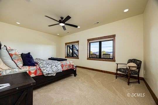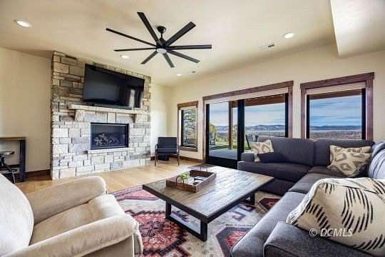 Masterfully crafted in 2021, this stunning luxury cabin in Elk Ridge Estates offers 3,174 sq ft of refined mountain living on 2.9 acres with sweeping valley and mountain views. Designed for both comfort and entertaining, the home features 3 bedrooms, 3 baths, a finished walkout basement, and 2 large attached garages. Vaulted wood ceilings, expansive windows, and a dramatic stone fireplace anchor the open-concept great room, while the gourmet kitchen includes propane range, stainless appliances, custom cabinetry, and generous workspace. The main-level master suite provides a private retreat with spa-style bath and walk-in closet. Enjoy year-round access with covered decks and patio spaces ideal for relaxing or hosting against a breathtaking high-elevation backdrop. Thoughtfully equipped for year-round comfort and reliability, the home offers central air, forced-air heating, propane service, and a backup generator ensuring dependable luxury in every season. This property blends privacy, craftsmanship, and functionality into an exceptional Southern Utah mountain escape. A rare opportunity to own refined mountain luxury in one of Southern Utah's most breathtaking settings.