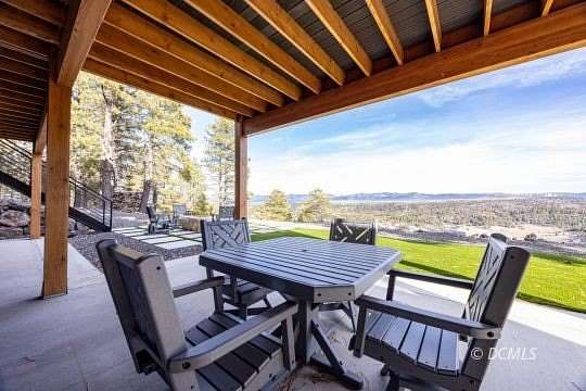 - All Year Access, Covered Patio, Deck(s) Covered, Gutters & Downspouts, Outdoor Lighting, Partial Landscape, RV/Boat Parking Space/Pad, Trees, View of Mountains, View of Valley