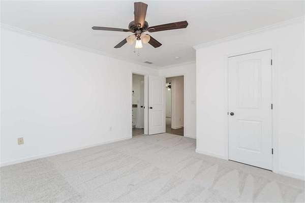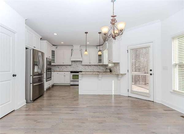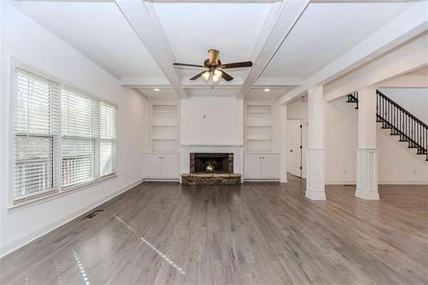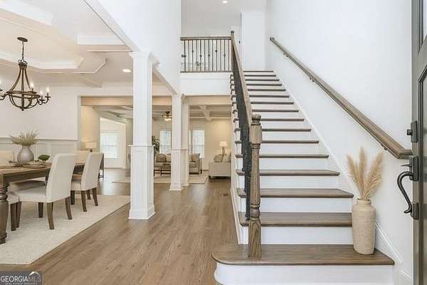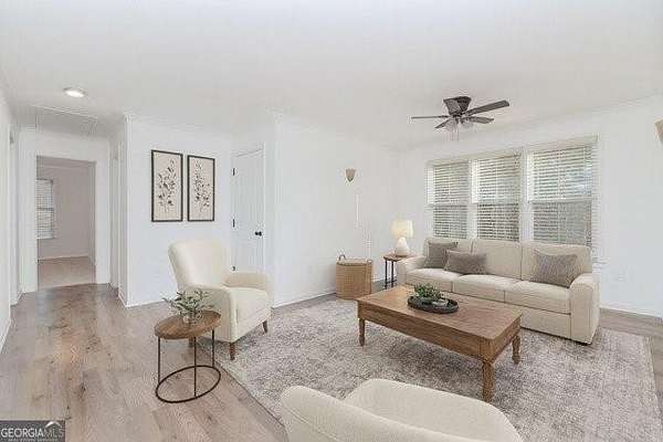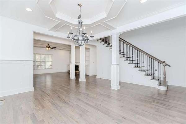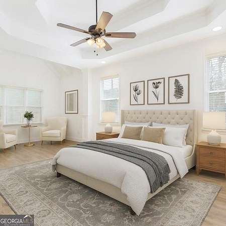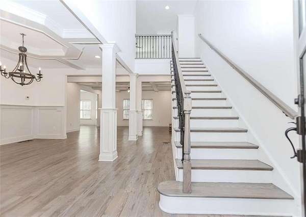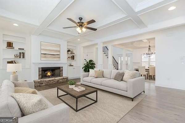 Welcome to this breathtaking 4-bedroom home, featuring a master suite on the main level and 5.5 bathrooms, nestled on a serene, private cul-de-sac lot of approximately 1.1 acre. Enjoy the elevated charm of the welcoming front porch that invites you into a recently renovated oasis. The open floor plan and two-story foyer are bathed in natural light, creating a warm and inviting atmosphere. This kitchen is a chef's delight, boasting sleek stainless steel appliances, elegant white cabinetry, and striking stone countertops, perfect for preparing meals and entertaining guests. The family room and living room both feature coffered ceilings, enhancing the sophistication of the space. Upstairs, discover a versatile loft area alongside three additional bedrooms and two full bathrooms, offering ample room for family and visitors. The partially finished basement includes two full baths, and the homeowner is willing to complete the basement to your specifications, allowing you to customize the space to suit your needs-whether for extra storage or additional living areas. With a generous 3,020 heated square feet, this home provides plenty of room to relax and unwind. Located in a highly desirable neighborhood, you'll enjoy convenient access to shopping centers, restaurants, schools, and are just minutes away from the Atlanta Falcons Training Complex. Commuting is a breeze with nearby access to major highways. Don't miss this exceptional opportunity to make this beautiful property your new hom
