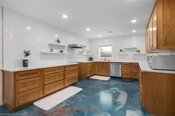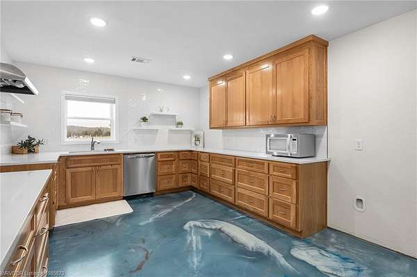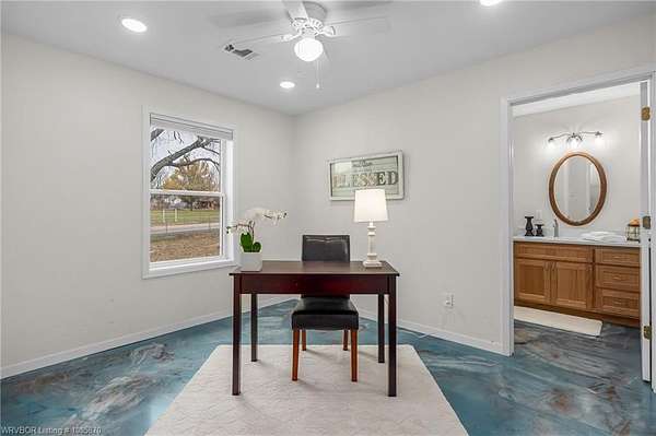 Beautiful custom built in 2023, everything is new as of 2023. Light fixtures, roof, HVAC, water heater, appliances, septic, concrete and epoxy floors, concrete foundation, levelor up down and room darkening blinds, and new windows. This home is stunning in person. Home features wheelchair accessibility, wide hallways, and walk in showers. Home total sq/ft heated and cooled per appraisal is 1,967 which includes 1,585 gross living area + 382 additional heated and cooled square footage of a work shop with a sink, storm shelter, and raised work table area that is built in. As well as a heated and cooled laundry room and pantry that is accessed through garage. This makes it convenient for groceries. You have an automatic gate that opens from road, drive into your 2 gar attached garage, exit vehicle and you can off load you groceries into the pantry right through 1 door in garage, open door to house and you are right inside kitchen through garage. If you would like privacy but still be close to town for your amenities this home is it. Property comes with a Generac Generator. Sits on 1.5 acres and has a beautiful screened in sunroom with shelving above for plants. Also has additional outbuilding for a shop/storage and a huge metal roof covered RV parking area. There are 3 exits from inside the house and 4 entry gates from the outside making it convenient for any new buyer. When you come to view use the large green gate entrance by Red Barn Place Rd. You definitely don't want to miss this one and all the beautiful details the sellers added. Floating shelves in the kitchen, polished concrete floors throughout making it easy to clean, gorgeous tile in the kitchen, and in both showers. Home features 2 primary suites and it is clean, fresh, and ready for you. Schedule your showing today and make this your home sweet home. Agents please see internal remarks for directions and appraisal.
