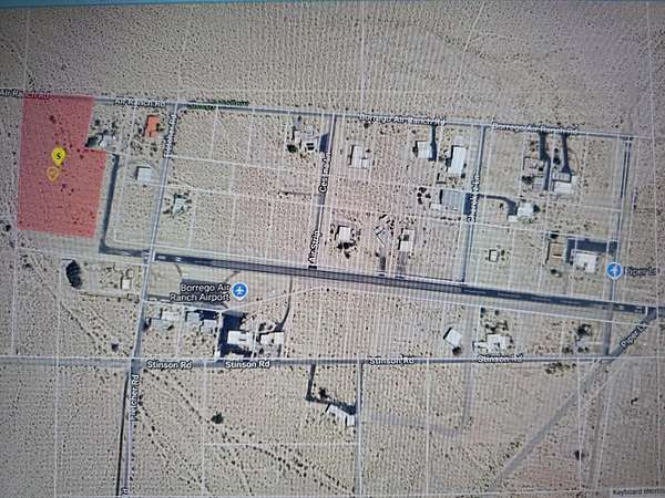 Est $593/moBorrego Springs, Ca. 4236 Connie Lane. 5.69 acres M/L of Residential land in the highly desirable Borrego Air Ranch. Aviation Lovers Dream. Incredible opportunity to own in this private gated and paved community in the heart of the desert. Property features access to its own private landing strip, ideal for small aircraft owners. Conveniently located between San Diego, Imperial and Riverside Counties. Enjoy this areas peace and gorgeous valley & mountain views and of course the Unique eclectic Artisan community of Borrego Springs while maintaining direct aviation access and gated community privacy.
