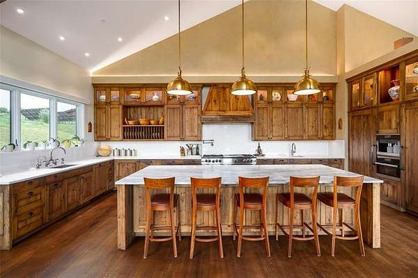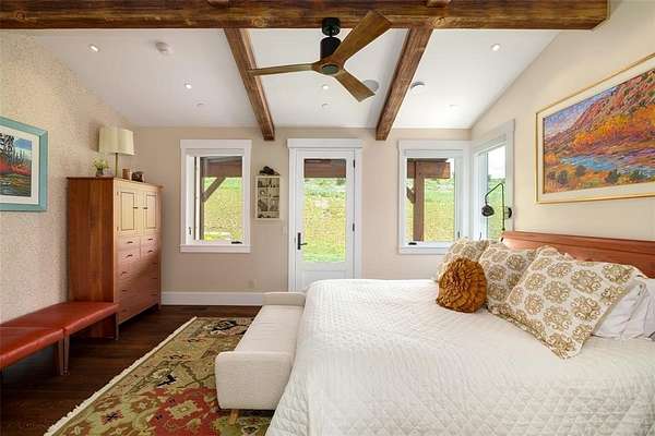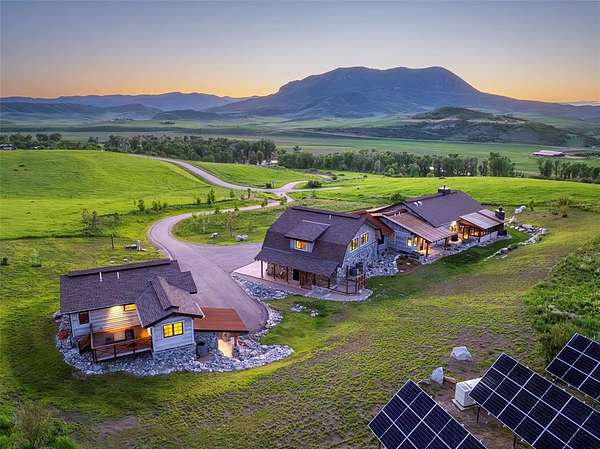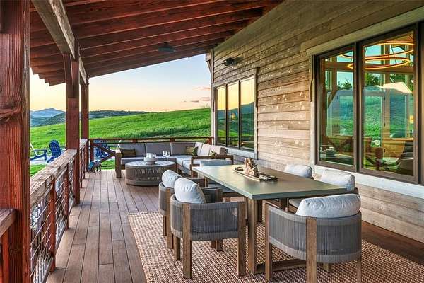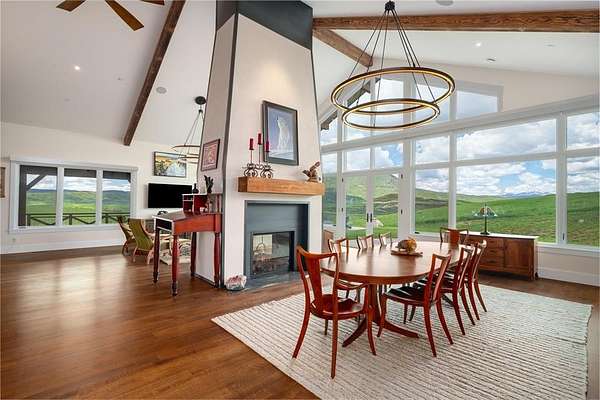 A custom-built legacy estate within the gates of Marabou Ranch, 42375 River Drum Trail encompasses 6.78 private acres just 15 minutes from downtown Steamboat Springs. Thoughtfully designed to engage the natural surroundings, the home captures panoramic views across the Steamboat Valley, Elk River corridor, Sleeping Giant, and the Flat Tops. Architecture and materials are grounded in the landscape, with reclaimed wood, natural stone, steel, and glass establishing a clear, enduring point of view. Traditional farmhouse forms are interpreted through a modern lens, resulting in spaces that are warm, intimate, and intentionally scaled. Vaulted wood-beamed ceilings, expansive windows, and gallery-style walls bring light deep into the home and provide space for art and personal collections. A dramatic floor-to-ceiling fireplace anchors the main living and dining areas, which flow to a country-inspired chef's kitchen, covered outdoor decks, and an enclosed porch with a fireplace designed for year-round use. The property serves as a multi-generational compound with 6 bedrooms and 5.5 baths, including a private 2-bedroom guest suite with full wet bar and a detached 2-bedroom guest house with a 2-car garage. Forward-thinking systems are designed for comfort and efficiency, including solar panels, Zehnder air filtration, whole-home humidification, and Savant home automation. Ownership includes full access to Marabou Ranch's resident-only amenities, including private fly fishing on the Elk River, equestrian facilities, miles of trails, a riverfront lodge, wellness amenities, owners' cabins, and a private ski lounge at the base of Steamboat Resort. On-site ranch management, professional guides, and concierge services support both daily living, recreation, and long-term stewardship.