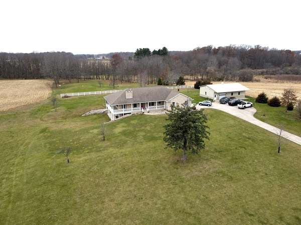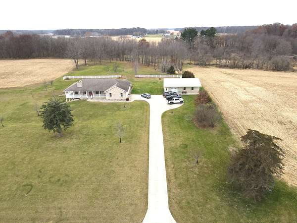 Located just south of Warsaw, Indiana, this beautiful property offers a spacious, well-built home on 25 +/- acres with endless possibilities. Featuring 3,274 sq ft of finished living space, the home includes 4 bedrooms and 3 full baths. It sits on natural gas and offers quality features such as geothermal heating, a fireplace, a walk-in safe room, and a walk-out basement with a second kitchenette. Enjoy country living at its finest with an open-concept family room perfect for gatherings, a finished basement providing additional living space for guests or extended family, and outdoor living areas that include a wrap-around porch and a four-seasons room overlooking the property.