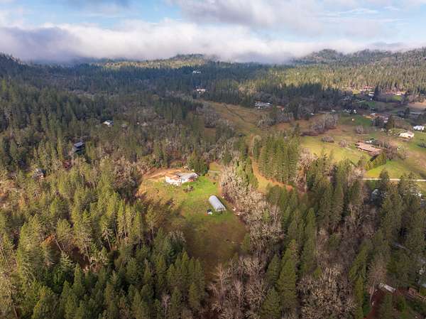 This Waterfront rural residence offers peaceful rural living just minutes from beautiful Grants Pass. Set in a scenic country corridor, the property features creek frontage and two residential parcels--ideal for those interested in building a property with multiple homes. Much of the groundwork is already complete. A graveled driveway leads to a flat, usable building pad, with public power on site, a private well installed, and a septic system in place. Access and core utilities--often the most time-consuming steps in rural development--are established. With two parcels, there is potential for a primary residence on each lot, plus the opportunity for an ADU per parcel (subject to County approval). Whether envisioning a multi-generational retreat, income-producing setup, or long-term legacy property, this offering combines flexibility, infrastructure, and natural setting in one compelling package.