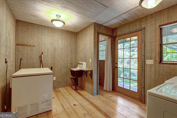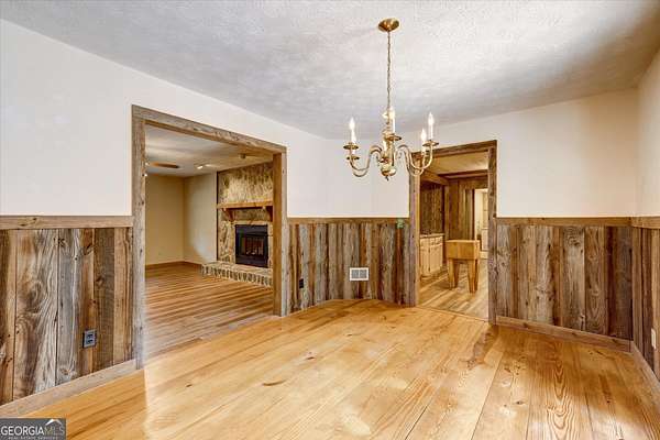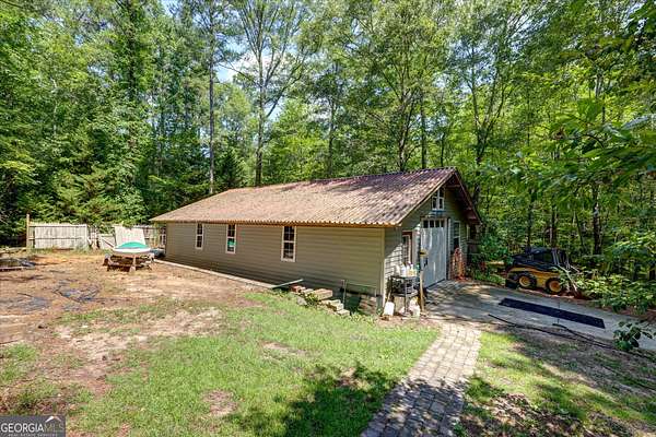 Enjoy the space and comfort you've been looking for. Nestled on 8.3 picturesque acres with private lake frontage, this stunning, move-in ready 3,555 sq. ft. mountain-style home that offers the perfect blend of seclusion and convenience, just 25 minutes south of Hartsfield-Jackson Atlanta International Airport. Located just five miles from shopping and Hwy 19/41, the property is accessible via a limited-access road ending at the Clayton County Water Authority, ensuring ultimate privacy. Step inside this spacious four-bedroom, three-and-a-half-bath home to find a thoughtfully designed layout featuring a cozy den with a warm gas fireplace, and living room open to the kitchen, a game room complete with a pool table and bar alongside a wood-burning stove for those chilly nights. The living room, kitchen and game room all have the added detail of 100 year old reclaimed wood from an old barn lining the walls. The kitchen boasts an eat-in bar, perfect for casual meals, and flows into a formal dining room ideal for hosting gatherings. The home also includes a functional mudroom with laundry facilities and a relaxing outdoor patio with counter space, a fire pit, and breathtaking views of the surrounding landscape. Exterior Features: -Four versatile outbuildings: a storage shed, woodworking space, garage and a well house. -A carport accommodating four vehicles and additional parking for up to ten, including motorhome parking. -Lush acreage full of blooms during the Spring and Summer seasons. Whether you're sipping coffee by the lake, enjoying a night around the fire pit, or crafting in the workshop, this property truly offers a little bit of heaven. Located in the highly sought-after Hampton, GA area, this unique property combines rural charm with close proximity to city amenities. Schedule your showing today to experience the tranquility and allure of this unique property.