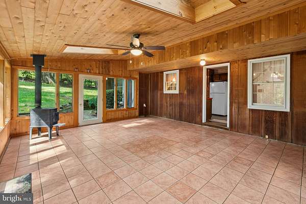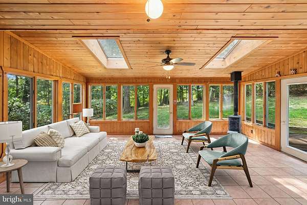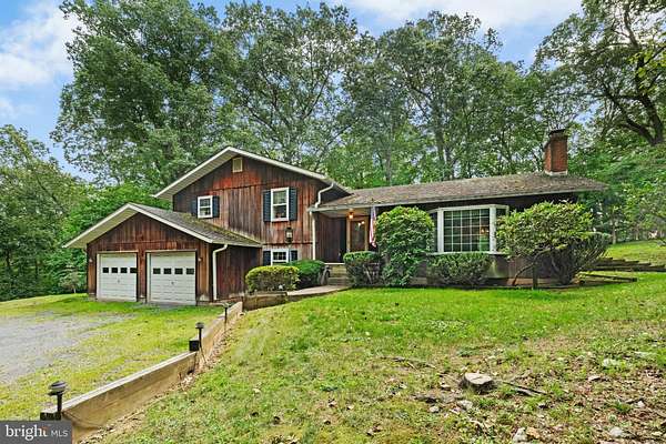 Set amidst the rolling hills of upper Bucks County where history and natural splendor marry to create an idyllic lifestyle, this home doubles as a full-time home and a vacation retreat, perfect for those seeking a peaceful country lifestyle. Redwood Hideaway is privately set on 3.5 wooded acres in the Palisades School District at the end of a long winding driveway in an unspoiled rural area with easy access to New Jersey, the Lehigh Valley and Doylestown. Redwood siding frames a sprawling floor plan that includes a large living room with wide plank wood floors, bow window, exposed beams and classic shelving and cabinetry flanking a brick fireplace. A large dining room with wide plank wood floors and chair railing is adjacent to a kitchen with pantry closets and brick wall encompassing a cooktop and wall oven. A massive sunroom with wood ceiling, skylights, wood stove and walls of windows overlooks the surrounding woodlands. An expansive family room also offers built-in shelving and cabinetry while a full bath and laundry room with storage are conveniently located nearby. Three second floor bedrooms include a primary suite with walk-in closet, In addition to the attached 2-car garage, a 40'x24' pole barn with oversized doors will appeal to a multitude of needs including housing equipment, atvs, collections and projects. Redwood Hideaway offers the luxury of simple comfort, peace and privacy interrupted only by nature's wonderful sights and sounds.