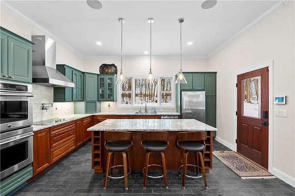 Historic Center Hall Colonial - Comprehensively updated and restored with Modern Amenities Located minutes to Cayuga Lake, Cornell University and the City of Ithaca, this elegant home on just over 6 acres offers a rare combination of historic significance, modern luxury and country quiet. The entertainers kitchen has solid wood cabinets, African Rainbow granite, crown molding and slate floors with large island and Walk in Pantry/Mudroom - all opening to formal dining area and spacious family room. The welcoming Center Hall has a powder room and leads to formal living room with French doors. The quiet office space in back has access to the back porch, patio and fenced yard. The primary suite is complete with WIC and built-ins, full bath with walk in shower and heated floors. The remaining two bedrooms are across the landing and share a renovated bathroom. The walk-up attic is great for storage or has potential to be finished into living space. Enjoy amazing sunrises and distant views on 6+ acres with a nice mix of level lawn and woods. Geothermal heating and cooling, hybrid hot water heater, rockwool and spray foam insulation, updated electric and plumbing, LP SmartSiding are just a few of the many details and care this restoration encompassed. A bit of history, originally built in 1790 by Captain Benajah Strong, a Revolutionary War officer and first cousin to Nathan Hale, the celebrated patriot who gave his life for American independence. This home's legacy runs even deeper through Strong's stepdaughter, Abigail Powers, who later married Millard Fillmore, the 13th President of the United States. As First Lady from 1850 to 1853, Abigail is credited with founding the first White House Library, leaving an indelible mark on American cultural heritage. Call your agent today!