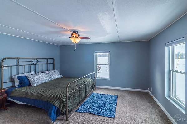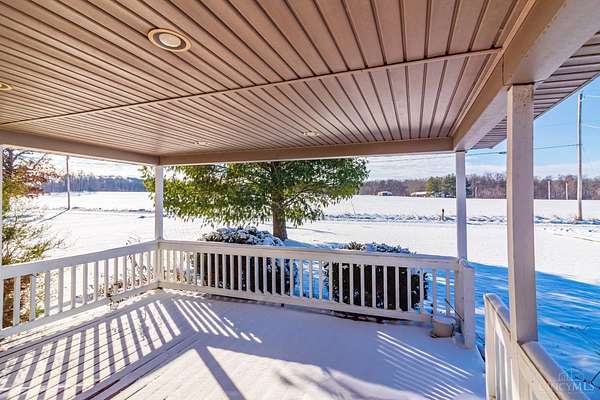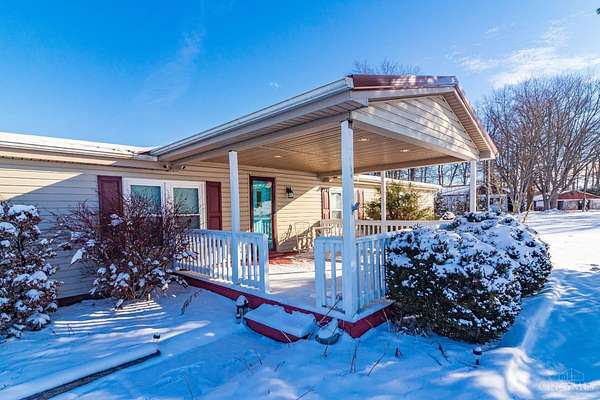 Welcome home to this beautifully maintained 3-bedroom, 2-bath ranch offering approximately 1,742 sq ft of comfortable living space, perfectly set on a gorgeous 3.67-acre lot surrounded by peaceful nature. The spacious primary suite features multiple closets and an adjoining bath complete with a large soaking tub, separate shower, and vanity area. A desirable split floor plan provides privacy, with two additional bedrooms and a full bath located on the opposite side of the home. Enjoy a large living room centered around a cozy electric fireplace, perfect for relaxing evenings. The kitchen offers an island, pantry, and included appliances, making it both functional and inviting. Start your mornings on the front porch overlooking open fields, or unwind on the covered back patio with a partially fenced yard. Love the outdoors? Fish right in your own backyard and enjoy abundant wildlife, all while being just minutes from State Route 32. A rare combination of space, privacy, & convenience