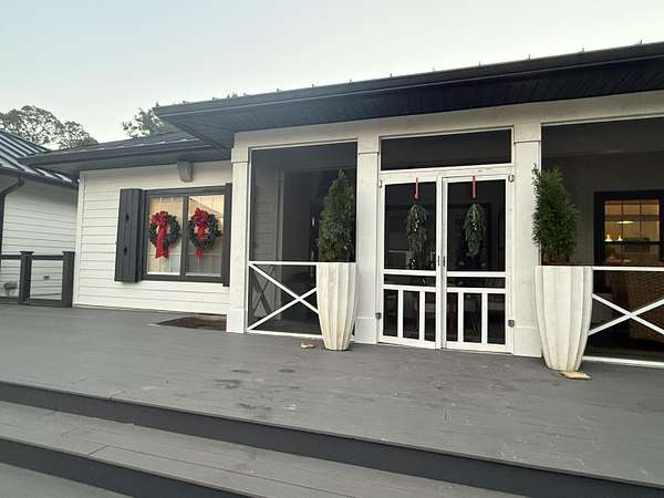 OMG! Nothing like this on the market. Cutest farmhouse this side of the Bay. Home taken down to the studs and new design will impress even the pickiest buyer. Tucked privately behind a grand oversized stockade fence for added privacy and security. The metal gate opens up and welcomes you to your equestrian property quaintly positioned between the Bay and the Beach. Hard to have the best of both worlds. Impress your guests with their own private guest quarters, complete with kitchenette, full bathroom, separate bedroom/living and dining space. Oversized pine trees/magnolia trees add so much shade and coverage to the property. You will truly get lost in the stillness of the trees with birds chirping and deer playing... Farm is complete with several paddock spaces, barn, oversized separate garage that will hold 4 large RV's, with a large office and half bathroom in the garage...Home has 3 oversized garage bays attached. Large basketball court. Oversized Chicken coop with fresh producing eggs daily...Dog run...Large grass arena with sand base for softer landings for those Equestrian Jumpers. Farm equipment and other items may stay for a negotiated price. Barn complete with tack room, feed room and 3 stables. Well water for the farm property, Home is on county water.