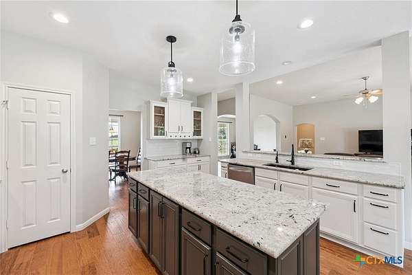 - All Bedrooms Down, Breakfast Bar, Built In Features, Ceiling Fans, Custom Cabinets, Granite Counters, Home Office, Kitchen Family Room Combo, Kitchen Island, Open Floorplan, Pantry, Solid Surface Counters, Walk In Closets