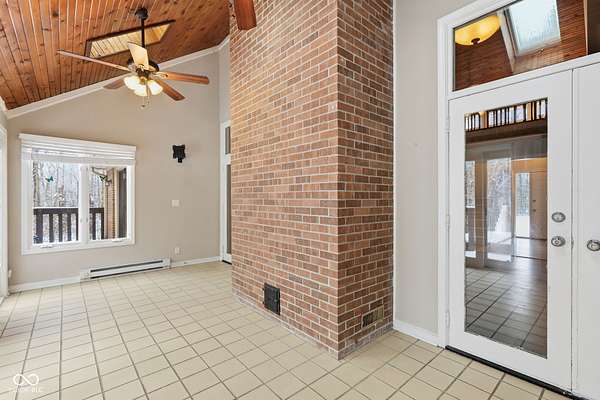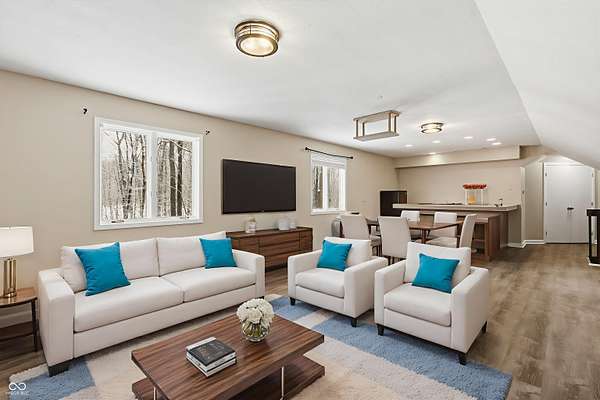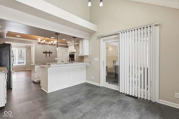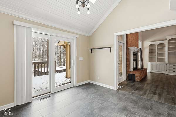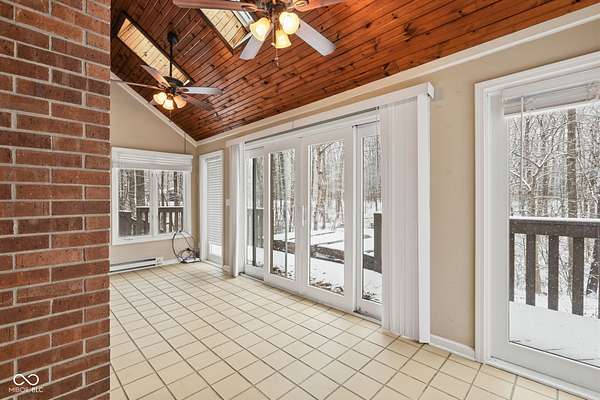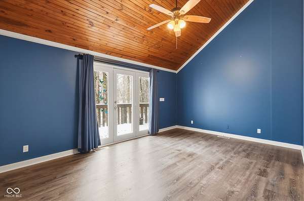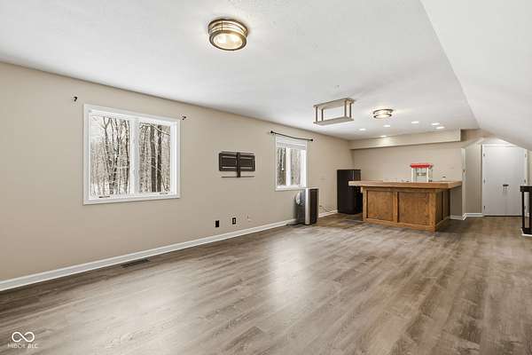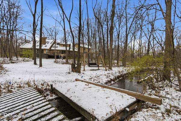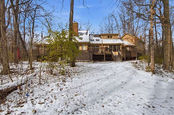 Escape to your own private haven on 5 scenic acres, where charm and recreation meet. This custom home is surrounded by mature shag bark Hickory, Maple, Walnut, and Oak trees as well as a peaceful stream. Relax in outdoor spaces made for enjoying every season, whether you're relaxing on the wraparound deck or taking a stroll on the peaceful trails. Inside, natural light fills the spacious layout. The kitchen, laundry room, and upstairs loft all feature brand-new 2025 LVP flooring, adding a fresh and modern touch while the 2024 roof provides security for years to come. Gather in the inviting great room with its soaring cathedral ceiling and wood-burning fireplace, or take in the views from the all-season sunroom. A 3-car attached garage also provides plenty of room for hosting and storage. The main-floor primary suite offers a peaceful retreat with deck access, generous closets, double sinks, a garden tub, and a separate shower. Upstairs, a versatile rec room with a wet bar creates the perfect hangout space. Outside, enjoy endless fun with a swim spa and hot tub, ideal for summer days and cozy nights. A truly one-of-a-kind property that combines comfort, privacy, and unforgettable outdoor living.