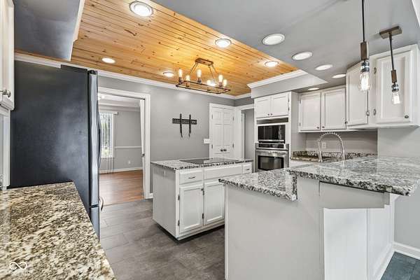 - Breakfast Bar, Built-In Features, Cathedral Ceiling(s), Entrance Foyer, Hardwood Floors, Kitchen Island, Pantry, Tray Ceiling(s), Walk-In Closet(s)