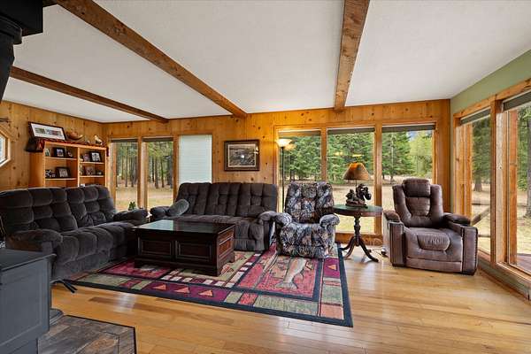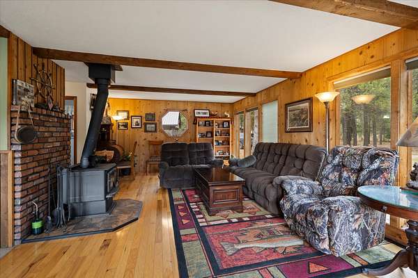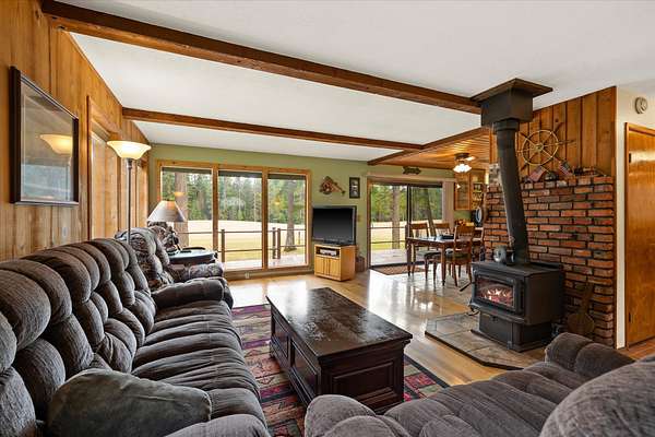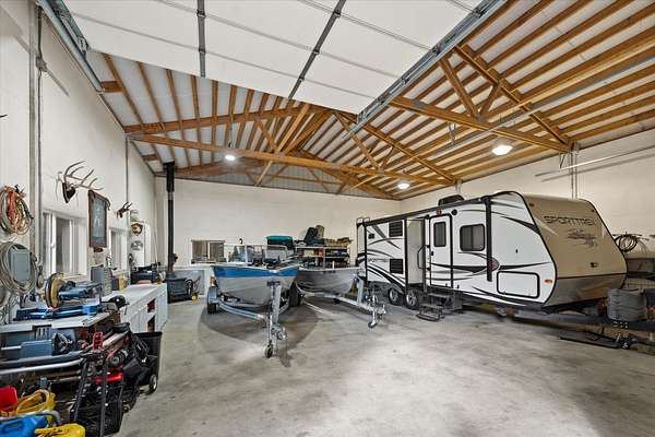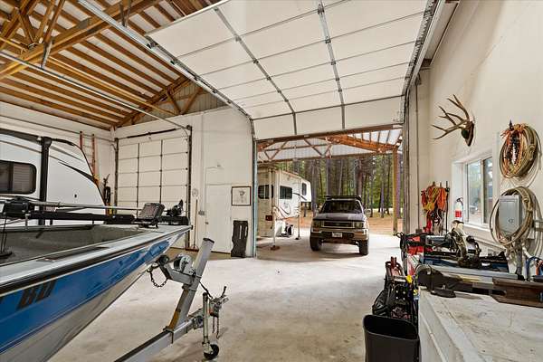 Tucked quietly among the trees, this 20-acre property feels less like a listing and more like a place where life can slow down. The 3-bedroom, 2-bath home sits amongst the pines, opening out to a beautiful meadow that stretches toward mountain views. The property offers space in every direction. A large 36x36 finished and heated shop provides plenty of room for projects, storing equipment, or whatever passions you bring. The detached garage includes an upstairs hobby room perfect for a studio, workspace, or quiet retreat away from the main house. With public access to Milnor Lake just a quarter mile away, it's easy to enjoy fishing, paddling, or swimming. With no covenants, the land is truly yours to enjoy and shape however you choose. Garden, bring animals, build additional structures, or simply keep it as the peaceful, open landscape it already is. A whole-home generator adds peace of mind, keeping everything running smoothly year-round.