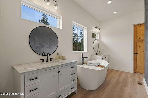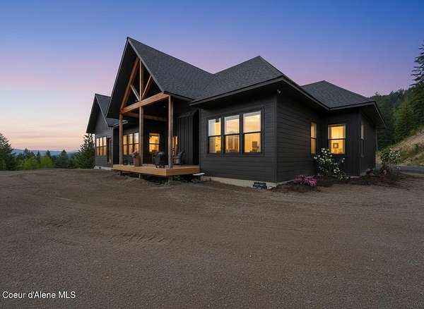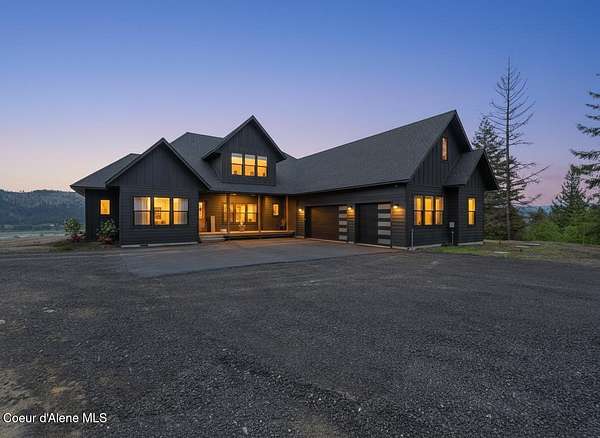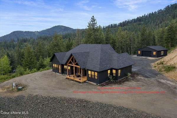 Set above Hepton Lake and the St. Joe River, this newly built North Idaho home offers a rare combination of privacy, views, and refined living. Situated on over 5 acres, the property captures sweeping water and mountain views in every direction--creating a setting that feels both peaceful and elevated. The home features 5 bedrooms, 3 bathrooms, and a dedicated in-home gym, with a thoughtfully designed open-concept layout that blends comfort and functionality. The gourmet kitchen offers generous counter space, a walk-in pantry, and modern finishes--ideal for both everyday living and entertaining. The main living area is anchored by soaring ceilings and double french doors that open to an expansive back deck, perfectly positioned to take in the surrounding scenery. The primary suite is designed as a true retreat, featuring a spa-inspired bathroom with a walk-in tile shower, dual shower heads, a freestanding soaking tub, and a spacious customizable closet. Additional highlights include 10-foot ceilings, solid wood doors, high-end fixtures throughout, an attached 3-car garage, and a prepared pad for a future shop. The property is paved and offers ease of access while maintaining a private, estate-like feel. A seller credit is being offered toward yard completion, allowing you to finish the outdoor space to your vision. If you're looking for space, views, and a well-appointed home in North Idaho, this is one worth seeing. owner/agent