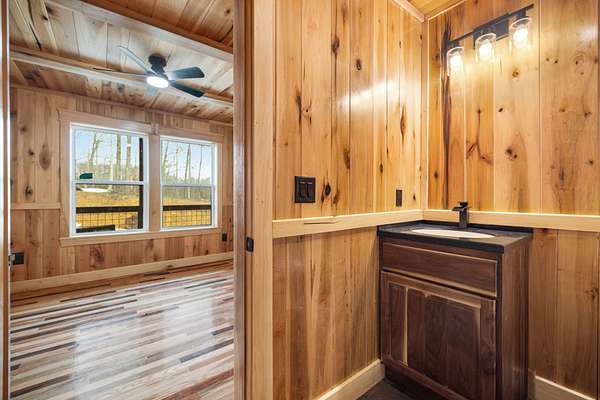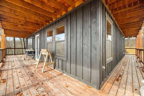 Located in Frenchburg near the scenic Red River Gorge, this 3-bedroom cabin offers the perfect blend of privacy and investment potential. Nestled among mature trees, the home features expansive multi-level wraparound decking ideal for relaxing or entertaining. Inside, you'll find beautiful locally sourced hardwood flooring, large windows that fill the space with natural light, and a lower level offering additional space for storage, recreation, or future customization. Whether you're seeking a personal getaway or a short-term rental opportunity, this property delivers seclusion, views, and convenience to outdoor attractions.