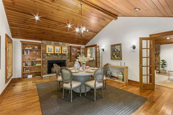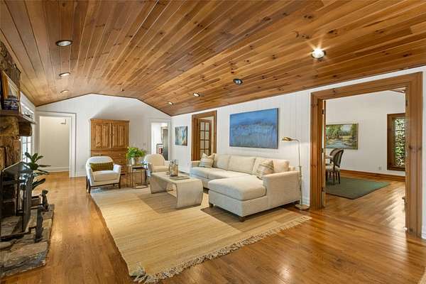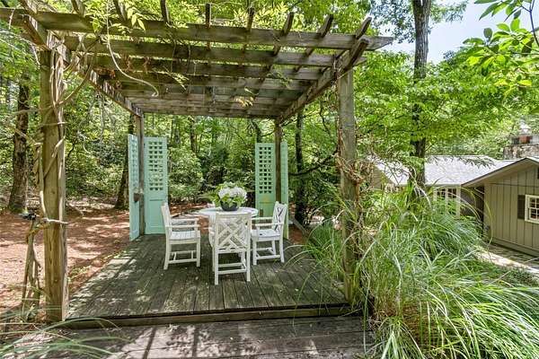 Located in the Sagee Mountain community of Highlands, this exceptional 3-bedroom, 3-bathroom home offers the perfect balance of privacy, luxury, and natural beauty. Set on a serene 1.66-acre lot, the property seamlessly blends into its surroundings-an opportunity to own a true mountain paradise. As you approach, a circular gravel driveway welcomes you, leading to a spacious two-car garage. Lush landscaping and tranquil pathways, adorned with stone accents, wind through the grounds, guiding you toward beautiful gardens and a charming pergola-a peaceful retreat where you can immerse yourself in nature. Stepping inside, the home's open-concept design and expansive windows bathe the interiors in natural light, framing breathtaking forest views. Vaulted ceilings enhance the sense of space and airiness, while the rich wood-paneled exterior carries through to the interior, where warm tones and high-end finishes create an inviting yet sophisticated ambiance. A striking stone fireplace, one of two in the home, anchors the great room, setting the perfect scene for cozy evenings. The thoughtfully designed single-level layout ensures an effortless flow between spaces, offering both comfort for everyday living and elegance for entertaining. Beyond the main living area, a large open deck extends the living space outdoors-an ideal setting for al fresco dining, morning coffee, or simply soaking in the fresh mountain air. Whether you're savoring the cool summers or marveling at the vibrant autumn foliage, the Highlands' climate enhances the beauty of every season. Though this retreat feels wonderfully secluded, it is just minutes from downtown Highlands, off Bowery Rd. Here, boutique shopping, fine dining, cultural landmarks, and premier outdoor activities are all within easy reach. Adding to its extraordinary appeal, the property adjoins 17 protected acres of the Highlands-Cashiers Land Trust, ensuring a forever-preserved natural backdrop. A home that offers both sanctuary and sophistication, this mountain retreat is ideal for those seeking serenity, elegance, and an unparalleled connection to nature.