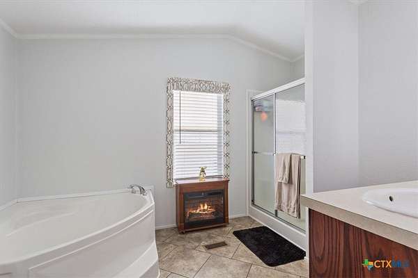 - All Bedrooms Down, Breakfast Bar, Ceiling Fans, Double Vanity, Garden Tub Roman Tub, Kitchen Family Room Combo, Open Floorplan, Pantry, Separate Shower, Solid Surface Counters, Vaulted Ceilings