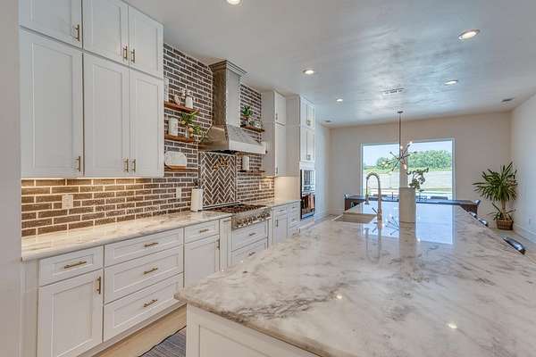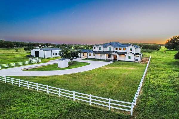 Experience the perfect blend of luxury and country living in this beautiful modern farmhouse in Marble Falls, TX. Through the private gated entrance, you'll find a spacious home offering 6 bedrooms, 5.5 baths, a dedicated office, and an upstairs flex space.. The open-concept design offers warm, welcoming spaces that are perfect for both everyday living and entertaining guests. Step outside to enjoy a brand-new swimming pool, a wet-weather pond, and wide-open Hill Country views. Outfitted with a whole-home RO system, energy-saving solar panels, and a 2,400 sq. ft. barn, this property delivers every convenience and more. Located just outside city limits, this is a rare opportunity to own a statement property in the heart of the hill country.