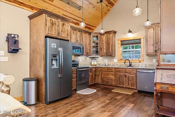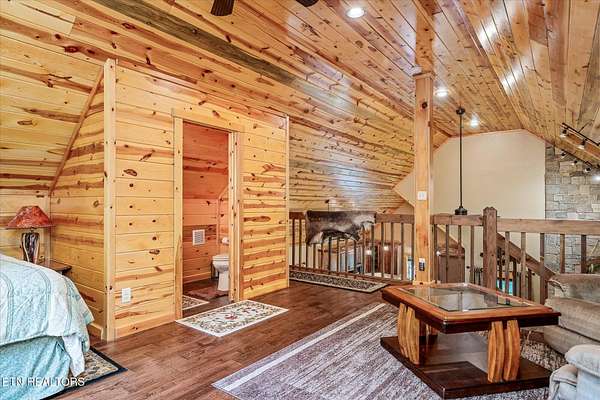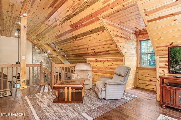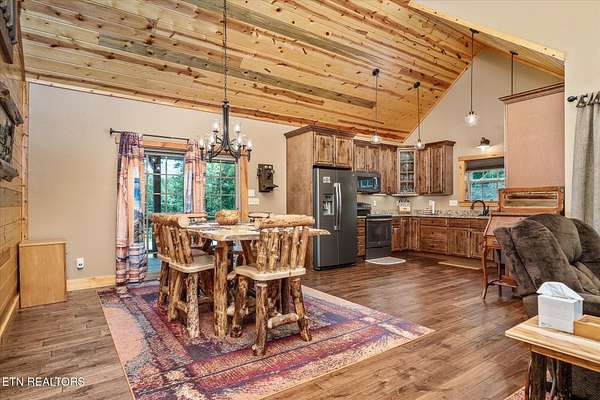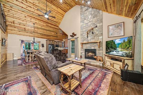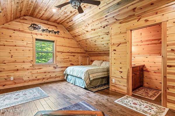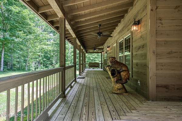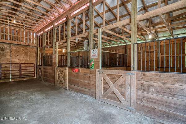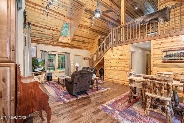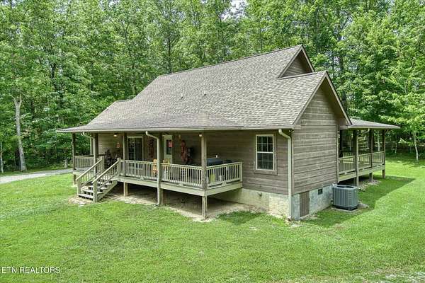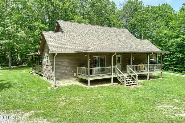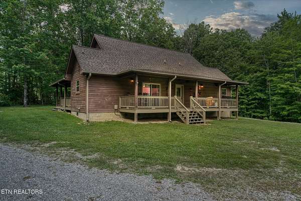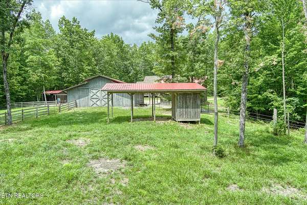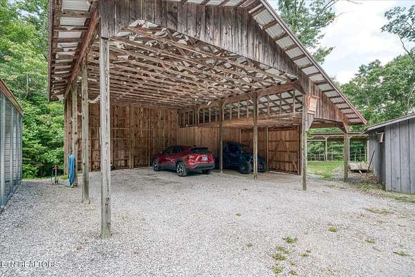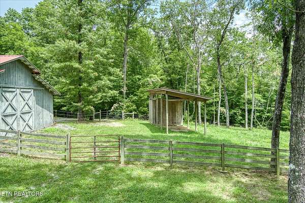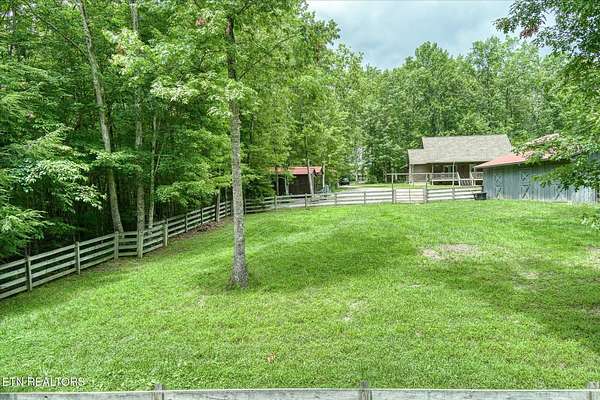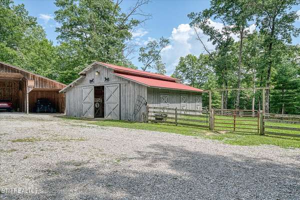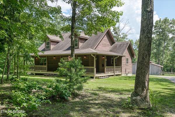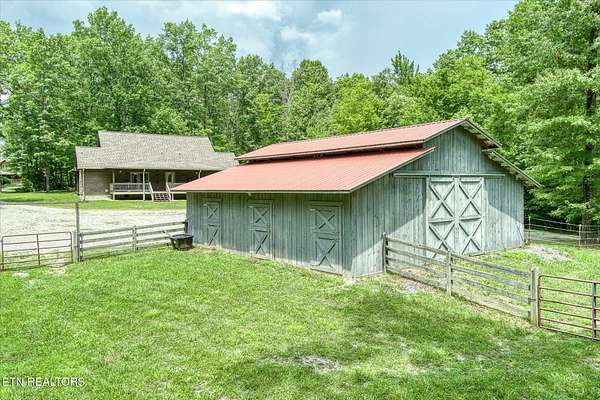 Located in Fentress County, widely regarded as the ''Trail Riding Capital of the Southeast,'' this property is just minutes from the world-renowned Big South Fork National River & Recreation Area and the East Fork Stables - offering hundreds of miles of horseback riding trails right at your doorstep. Bring your horses and your adventurous spirit - Inside this well-maintained cabin style home you'll find a bright, open floor plan with natural light pouring in through large windows, creating a warm and inviting atmosphere and beautiful 3/4 inch hand scraped oak 5 in plank flooring throughout. The spacious living room flows easily into a country-style kitchen complete with plenty of cabinet storage and granite kitchen countertops and a cozy dining area. The primary bedroom suite includes a private bath and generous closet space, while the additional second bedroom is ideal for guests, a home office, or a growing family. This home also has pocket doors in several of the rooms. Upstairs you will find a generously sided open loft room with windows and a half bath. The beautiful propane fireplace will keep you warm in the winter months and did I mention this home also has a brand new HVAC unit just installed 2025 to keep you cool on those hot summer days and warm in the chilling winter months. The septic on this home was designed for a 3 bedroom. The roof has asphalt architectural shingle roofing along with 6 inch leaf guard gutters. This home also features 2 covered decks perfect for enjoying your morning beverage while watching wildlife. The driveway is a wrap around which makes it easy for larger trailers. Step outside and discover the his and her sheds complete with electric to create an office space or use them for more storage. The property also has a large (36 x 36) barn with Dutch Doors and inside you will find 3 large (12 x12) horse stalls, hay storage and a large tack room plus water and electric. Off from the back of the barn there is a nice pasture and a 32 x 14 pole barn for storing hay and equipment. Off to the side of the barn you will discover a 38 x 32 open front barn equipped with 2 RV hook ups with electric, water and septic and on the backside, a small storage shed for small tractor or mower. Despite its secluded feel, the property is conveniently located just: 15 minutes from downtown Jamestown for shopping, schools, and local dining 40 minutes to Crossville, TN 45 minutes to Cookeville, TN You're also close to Pickett State Park, Dale Hollow Lake, Colditz Cove State Natural Area, and Sgt. Alvin C. York State Historic Park - all offering outdoor recreation like kayaking, fishing, hiking, and camping. Whether you envision trail rides at sunrise, cultivating a homestead, or simply relaxing under the stars in your own rural paradise, 424 Wilderness Lane offers the lifestyle you've been searching for. Don't miss your chance to own this slice of East Tennessee heaven. **Boat Carport does not convey. It will be moved off property prior to closing.