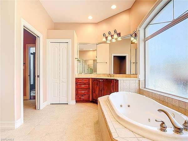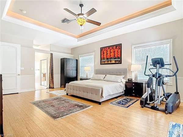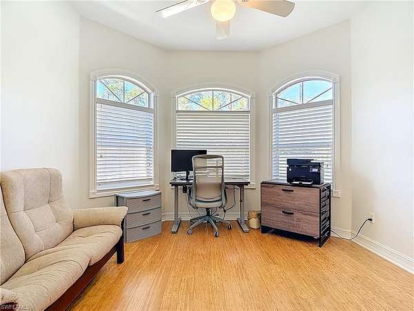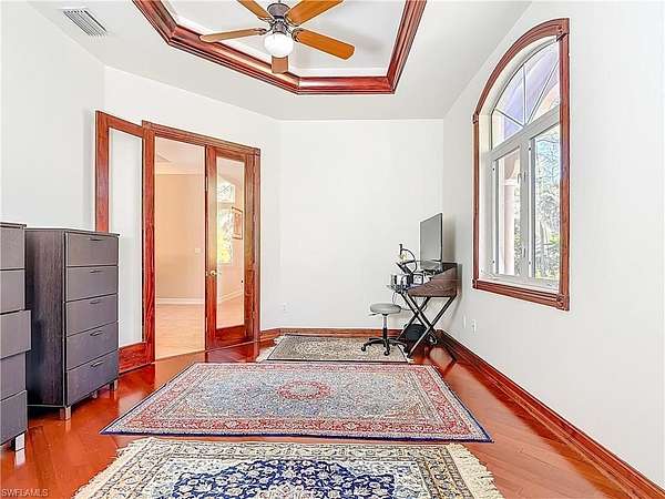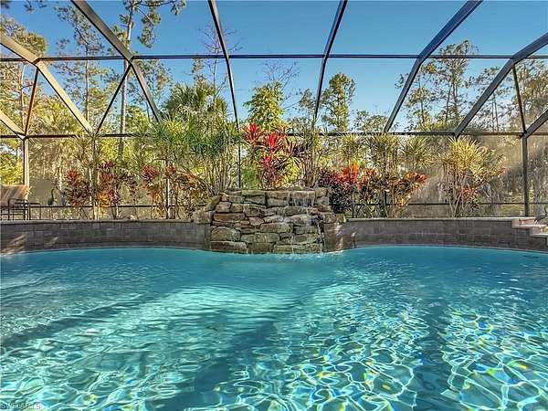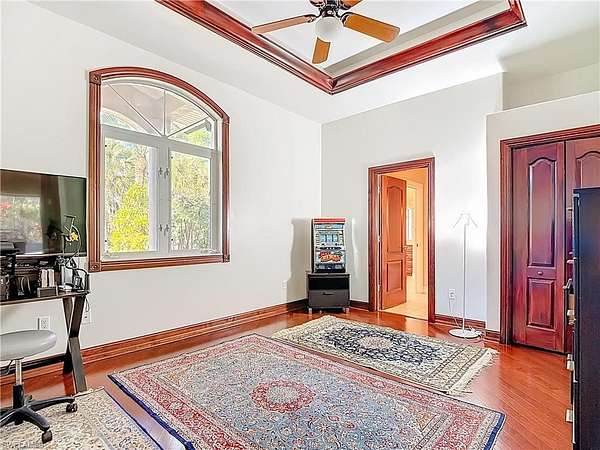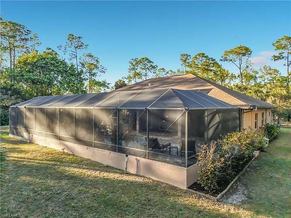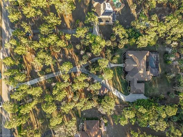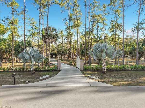 CUSTOM ESTATE ON 2.73 ACRES - BEST VALUE IN COLLIER WOODS Welcome to your private sanctuary. Situated on a sprawling fully fenced and gated 2.73-acre lot, this extraordinary custom-built home offers a level of craftsmanship and architectural detail rarely found at this price point. A grand circular driveway and stately arched portico welcome you into an expansive interior defined by soaring volume ceilings with double backlit tray details and distinguished arched windows that flood the home with natural light. The heart of the home is a generous chef's kitchen featuring abundant rich custom cabinetry, expansive granite countertops, double wall Wolf ovens, a massive center island and an oversized finished walk-in pantry. The split floor plan ensures ultimate privacy for the primary suite, which boasts bamboo wood flooring, a sitting area, and a spa-inspired bath with a soaking jetted tub and oversized walk-in shower. The water closet connects to a smaller room which is perfect for a nursery, office or library. Efficiency is paramount, featuring two top-tier heat pumps (4 & 2-ton), an 80-gallon hybrid water heater, and a whole-house RO system with a 500-gallon tank. The oversized 3-car garage (separate 2-car and 1-car bays) is equipped with two Tesla EV wall chargers, while the pool utilizes premium variable-speed equipment. Step outside to your own tropical resort: the massive screened lanai houses a solar-heated, salt water free-form pool with a custom rock waterfall. Relaxation is guaranteed with the inclusion of a premium 8 person M8 Bullfrog Hot Tub, featuring a unique double lounge seat. The grounds are a horticultural masterpiece featuring mature fruit trees, Jasmine, Royal Poinciana, Ylang Ylang, Silver Palms, Powder Puffs, Bottle Brush and Hong Kong Orchid trees. With no HOA restrictions and abundant privacy, this estate offers the freedom of the country with the luxury of Naples.