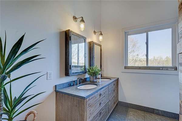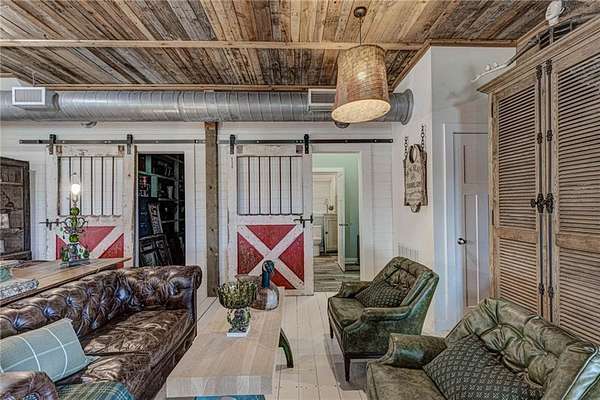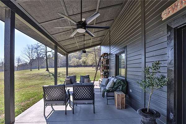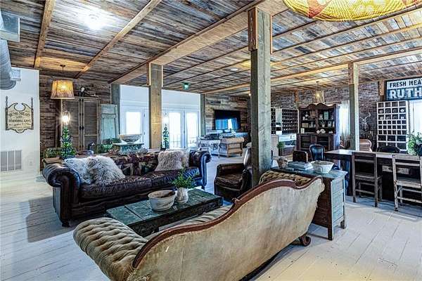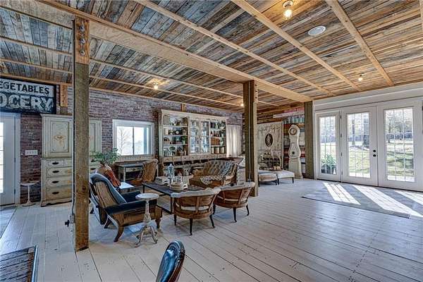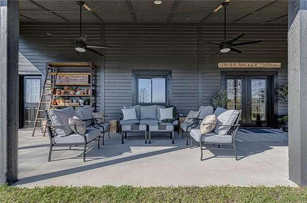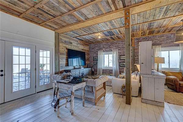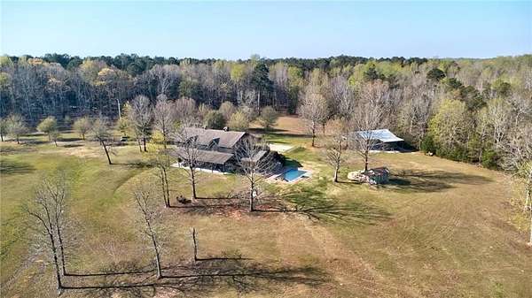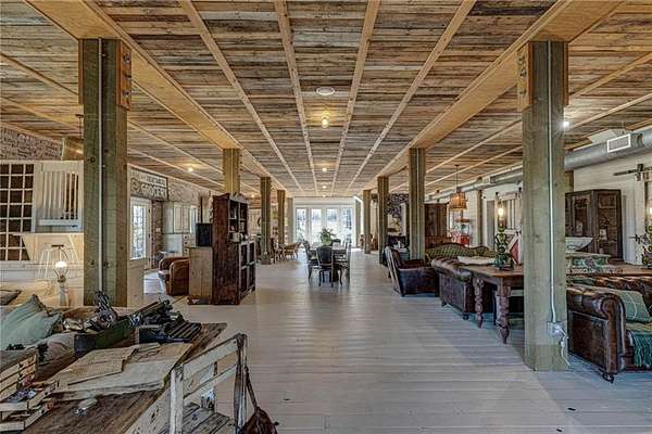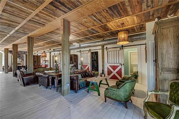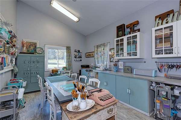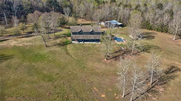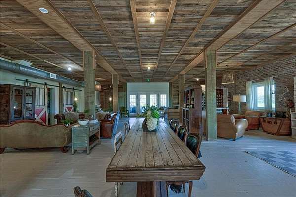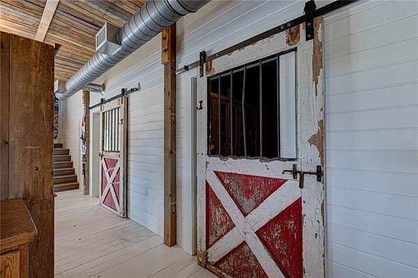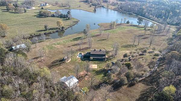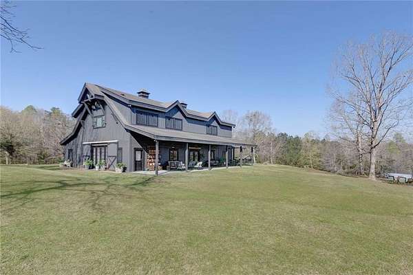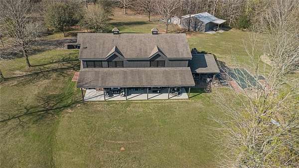 Set on nearly 50 breathtaking acres, this one-of-a-kind reimagined barn offers a rare blend of character, privacy, and modern comfort. Overlooking a stunning 15-acre lake, the property is designed for both everyday living and unforgettable entertaining. The elevated main living level captures sweeping views, intentionally creating a private family retreat. Upstairs, you’ll find the kitchen, living spaces, and all three bedrooms, each with a full ensuite bathroom. Warm, classic design meets a cozy, refined aesthetic where large windows throughout flood the home with natural light and frame the surrounding landscape beautifully. The lower level offers exceptional flexibility, featuring a spacious open entertaining area, full bath, craft room, office, pantry, and laundry. These rooms can easily function as additional bedrooms or guest spaces, providing options for multi-generational living or future expansion. Step outside to experience everything this property has to offer. A front facing, large covered porch overlooks the fully stocked lake, while the pool with hot tub and adjacent covered outdoor entertaining space—complete with fire place, dining area, and TV—create the perfect setting for hosting family and friends. A charming she shed adds character and versatility, and the expansive 30x40 heated & cooled shop provides ample space for woodworking, storage, or hobbies. Also has 40x60 equipment shed. Thoughtful updates like new windows throughout, updated heating and cooling systems, and exterior paint completed just two years ago, ensure peace of mind and move-in readiness. This is more than a home—it’s a lifestyle. Whether your dream home checklist includes private retreat, entertainers dream, or rustic luxury this property checks the boxes. With room to grow and adapt, this extraordinary estate offers endless possibilities.