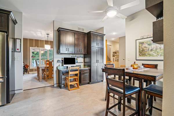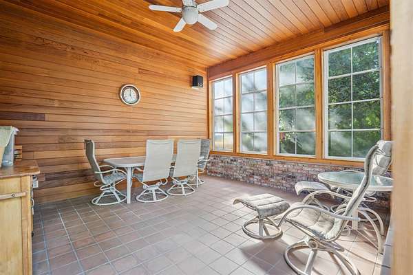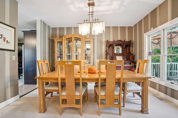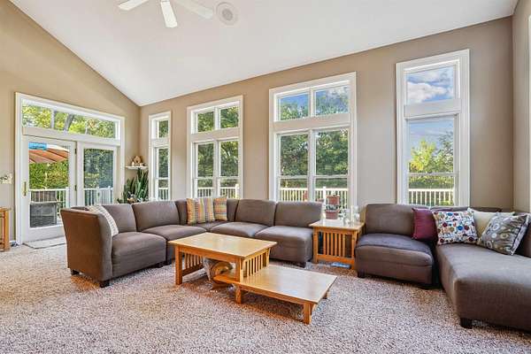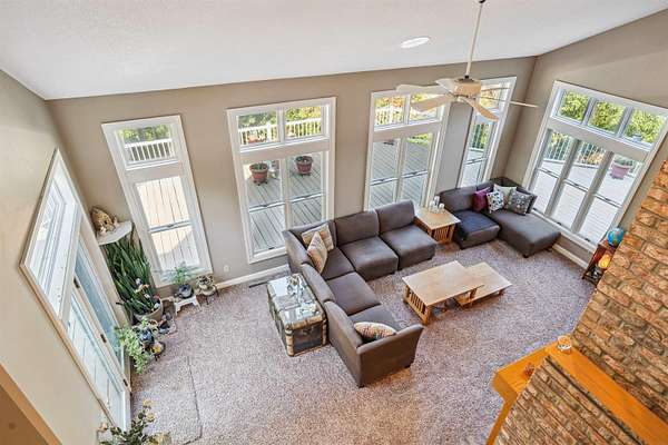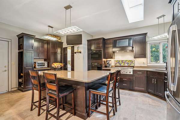 Private Wooded Retreat on 3.2 Acres-Beautifully maintained and privately nestled on 3.2 wooded acres, this stunning home offers the perfect balance of serenity, space, and modern comfort. The remodeled kitchen is a chef's dream, featuring a huge island with quartz countertops, double ovens, a gas cooktop, brand-new refrigerator, and a bright breakfast nook. The oversized dining room opens seamlessly to the large living room, highlighted by panoramic views, custom built-ins and an expansive masonry gas fireplace - the ideal setting for gatherings or quiet evenings at home. Step out to the wrap-around deck from either the living room or the primary suite, where you can enjoy peaceful wooded views and morning coffee surrounded by nature. The primary suite is a true retreat with dual walk-in closets, deck access, and a spa-inspired ensuite featuring a bubbler soaking tub and walk-in shower. Upstairs, a loft area complements two oversized bedrooms connected by a Jack and Jill bath with a double-sink vanity and a separate toilet and shower area. Each of the home's four bedrooms includes its own walk-in closet. The walkout lower level adds even more living space, with a second gas fireplace, a family room, a fourth bedroom, and a large bathroom. There's also an abundance of storage, plus unfinished space currently used as a craft room and workshop. Outdoor living shines here - enjoy the one-of-a-kind three-season room, designed for relaxation in nature without the heat or bugs. A designated picnic area with new decking (to be installed November 2025) and a concrete fire pit with rotating grill makes this the perfect place to gather with family and friends. The 1080 sq. ft. garage easily accommodates up to four vehicles, with extra space for storage and a workbench. Major updates include A/C (2020), water heater (2021), and furnace (2022) - offering peace of mind for years to come. Experience the best of both worlds: peaceful acreage living with modern amenities and thoughtful design throughout.