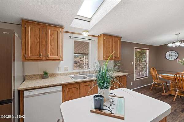 Welcome to 4240 E Pinto Lane, where wide-open desert living meets everyday comfort and rustic charm! This 4 bedroom, 2 bath manufactured home sits on 1.97 fully fenced acres with two gated entrances, offering ample room for all your hobbies, horses, and toys. Bring the RV, there's a full hookup already in place! The property is fully enclosed with an expensive 6-foot horse fence that's unlike anything else in the area, adding value, security, and a touch of equestrian elegance. There's also evidence of former horse paddock poles that were cut off at one time and power run to what used to be a cement pad for watering horses, making this an ideal setup to easily reintroduce horse facilities if desired. Enjoy fresh exterior paint, a 3-year-old roof, a new HVAC system (just 1 year old), and the shade of mature mesquite trees that give the property a true Arizona feel. Step outside to breathtaking Catalina Mountain views, the perfect backdrop for your morning coffee or sunset barbecues. For the tinkerer, artist, or maker, there's a versatile workshop/studio with power, ready for projects, storage, or creative space. With flat, usable land, horse privileges, and that laid-back desert vibe, this property offers both freedom and potential in every direction. Whether you're looking to spread out, need more space, or simply want to soak up the mountain views, Pinto Lane is your ticket to easygoing Arizona living.