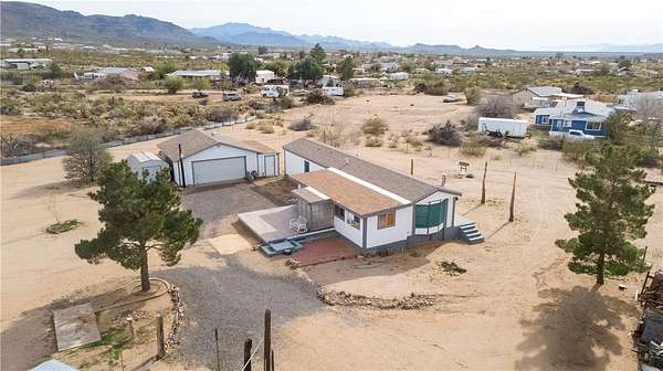 Clean and neat 2/1/2 Single Wide, with Tie Downs, on fenced 2.27 acres. Located on a corner lot with easy access from Hwy 68 in Golden Valley, there is a lot to Love about this property. The woodburning stove/fireplace is cozy and ready for these Arizona Winter nights. All existing furniture conveys, with exception to the Primary Bed, computer desk and computer. The Primary Bedroom is spacious with a huge custom closet. Carpet in bedrooms and Living room is 2 years old. You will love the decks on front and back. The front porch is an 8x10 Add-On as is the 6x24 workshop on South wall of garage. Besides the wood burning stove, you'll also have Central heat along with Central Air, Window air and Evap. The kitchen has plenty of cupboards and space for a small dining room table and chairs. If you like to garden, feed the birds or want to set up a chicken coop, the little gardening shed out in the front yard is the perfect place for that. Ample parking accommodates boats, 4-wheelers, side-by-sides, and more. This destination offers a perfect blend of adventure and relaxation, with the Hualapai Mountains just outside of Kingman, Katherine's Landing (fishing), Davis Camp, Bullhead City and the Colorado River just 30-45 minutes away. You're just an hour or 2 from Lake Havasu City, Las Vegas and the Grand Canyon Skywalk. When it gets hot, Flagstaff is a 2+hr drive. Come sit on the porch, enjoy a cup of joe and take in the quail hooting and scratching and the quiet scenery. Super cute and super clean!
