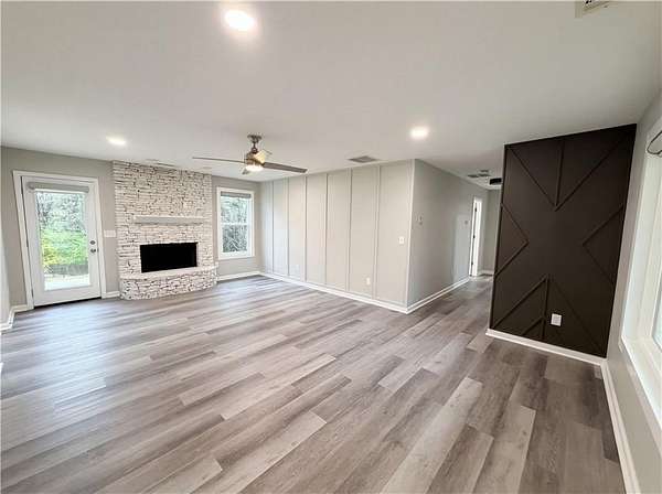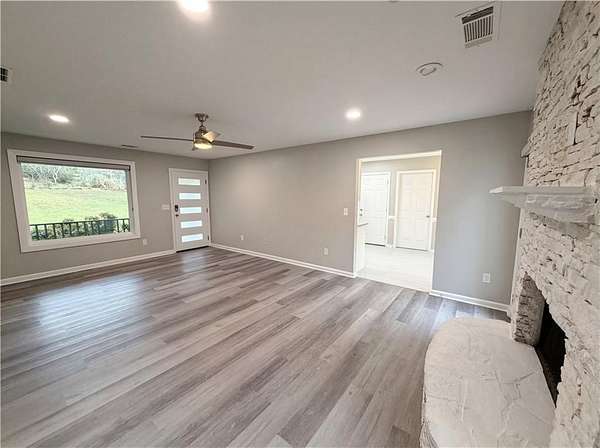 Est $2,086/moThe fireplace defines the main living area at 4241 Grady Smith Rd. The kitchen includes an accent backsplash and all stainless steel appliances. The primary bedroom contains a walk in closet. The exterior space provides a patio. This property remains available for sale as a residential unit that maintains a standard interior design. Included 100-Day Home Warranty with buyer activation