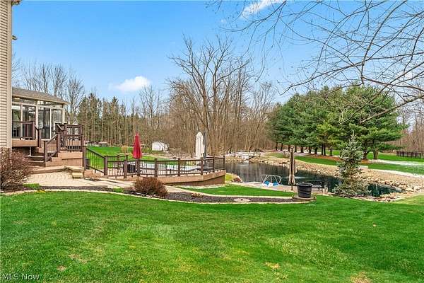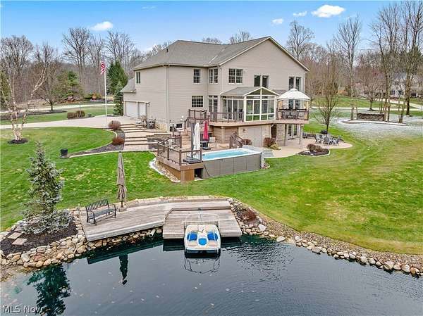Nestled on a peaceful cul-de-sac lot, this exceptional home offers stunning views of a picturesque, fully stocked 10-foot-deep pond the moment you arrive-and continues to impress from nearly every angle of the property. With over $150,000 invested in exterior upgrades, this home blends luxury, comfort, and outdoor living at its finest. Step outside to enjoy the expansive TimberTech decking, a charming gazebo (included), and a 17' x 8' swim spa-perfect for relaxation or entertaining. The pond is thoughtfully maintained with two aerators, and even includes a paddle boat that will convey with the home, creating a truly unique backyard retreat. Inside, the home is equally impressive. The spacious family room features a dramatic floor-to-ceiling fireplace and a custom-built bar, making it ideal for gatherings. A bright three-season room addition (2016) offers a perfect place to unwind while taking in serene water views. The walk-out basement is an entertainer's dream, complete with a custom-built bar, a full kitchen, and a full bath-perfect for hosting guests or extended stays. All kitchen appliances-both upstairs and in the basement-will remain, along with the washer and dryer for added convenience. Additional highlights include a beautifully finished garage with an epoxy-coated floor and thoughtful upgrades throughout that make this home truly move-in ready. This is more than just a home-it's a private retreat designed for everyday enjoyment and unforgettable entertaining.