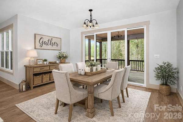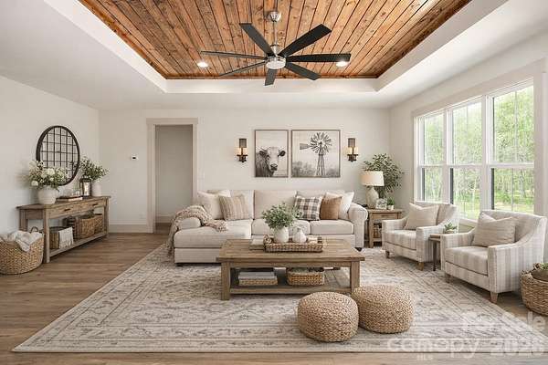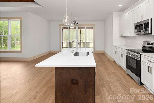 A rare blend of refined design and peaceful living, this stunning new construction home on 1.61 acres redefines modern country elegance in the heart of Norwood. Thoughtfully crafted with impeccable attention to detail, this 3-bedroom, 2-bath residence offers 1,727 square feet of sophisticated, open-concept living filled with natural light, soaring ceilings, and premium finishes throughout . The designer kitchen serves as a striking centerpiece, featuring a spacious island, sleek surfaces, white cabinetry, and stainless appliances that flow effortlessly into the living and dining areas making it perfect for both intimate gatherings and elevated entertaining. Retreat to the primary suite, where a spa-inspired bath with a beautifully tiled walk-in shower, dual vanities, and generous closet space creates a true sanctuary. Thoughtful architectural touches, including warm wood ceiling accents and seamless indoor-outdoor transitions, enhance the home's character and charm. Step outside to enjoy the covered front porch or unwind on the expansive rear covered porch overlooking a private, tree-lined setting that offers both serenity and space. Complete with a side-load two-car garage, concrete driveway, and the added benefit of no HOA, this property delivers an exceptional lifestyle defined by comfort, privacy, and timeless style.