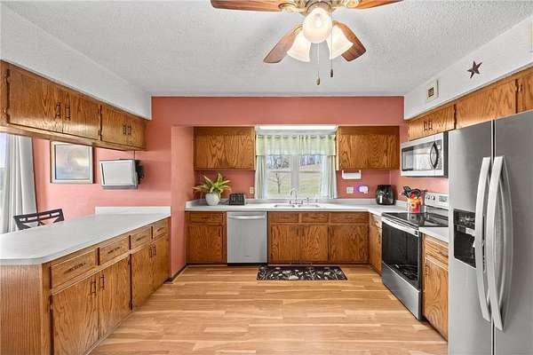 Welcome home to this beautifully updated 5 BR 2Bath country property set on 2.63 acres of tranquil countryside and room to roam. Built in 1978 this spacious home has been thoughtfully updated and loved over the past 30+ years. The main level features a bright and spacious living room with large windows that fill the home with natural light. The kitchen shines with stainless steel appliances new in 2024 blending modern convenience with classic charm. Three main level bedrooms including the private primary ensuite has walk-in tiled shower and new handsome LVP flooring. Extensive updates include a new roof, new septic system, new siding and gutters and all new windows. Mechanical improvements include a new hot water heater (2024) and new furnace and AC approx in 20217 including a Kinetico water softener system. The finished walk out lower level adds two more bedrooms and spacious family room & rec room. Plumbed for an additional bathroom if desired the lower level also offers direct walkout access to garage making it easy to haul supplies in and out! Enjoy peaceful country living surrounded by beautiful views. There is plenty of room for gardening, outdoor activities and additional out building. Welcome home!