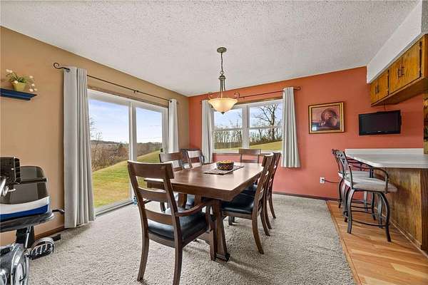 Welcome home to this updated 5 BR 2 Bath country property nestled on 2.63 acres of peaceful countryside. Built in 1978 this spacious home has been thoughtfully updated and loved over the past 30+ years. The main level features a bright and spacious living room with a large bay window that fills the home with natural light. The kitchen shines with stainless steel appliances new in 2024 blending modern convenience with classic charm. Three main level bedrooms including the private primary ensuite has walk-in shower and new handsome LVP flooring. Extensive updates include a new roof, new septic system, new siding and gutters and all new windows. Mechanical improvements include a new hot water heater (2024) and new furnace and AC approx. in 2017 including a Kinetico water softener system. The finished walk out lower level adds two more bedrooms and spacious family room & recreation room. Plumber for an additional bathroom if desired the lower level also offers direct walkout access to garage! Enjoy peaceful country living ~ welcome home!