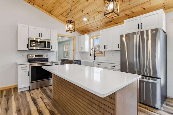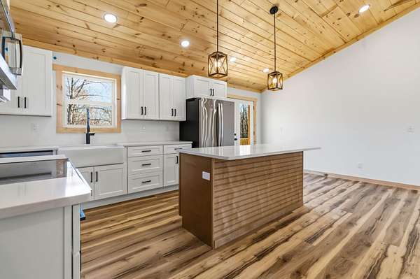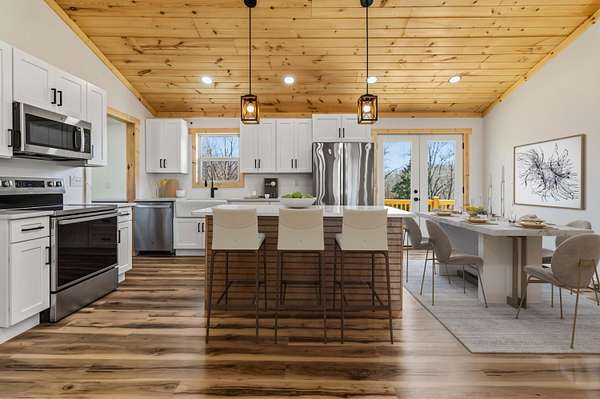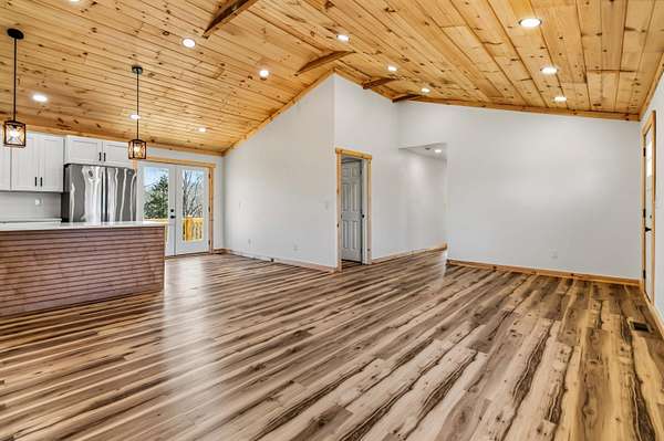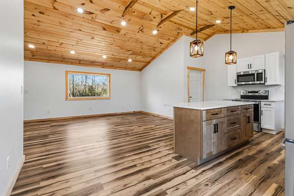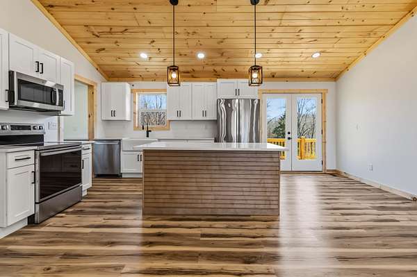 Completely rebuilt and finished in 2026, this beautiful 3 bedroom, 2 full bath home offers the feel of new construction. The spacious main living area features a stunning tongue and groove vaulted ceiling that creates a grand and inviting entrance. The kitchen showcases brand new cabinetry with soft close drawers and doors, along with a flex pantry area offering additional storage cabinetry and open shelving. The primary includes a private en suite bathroom with a double vanity, large tiled walk in shower, and an oversized double racked walk in closet. Step outside to a back deck with stairs leading down to the yard, perfect for enjoying the peaceful surroundings. Situated on 2 acres in beautiful McCreary County, an area known for its proximity to the Daniel Boone National Forest, Cumberland Falls, nature and ample hiking trails. The property offers privacy while still being conveniently located. Schools and grocery stores are easily accessible, with hospitals located in nearby communities including Somerset and Oneida, TN. The location also provides convenient access to several towns for shopping, dining, and everyday needs. Take the new road cut through KY-92 for a quicker 22 mile commute to Williamsburg with direct access to I-75, travel less than 7 miles south to Winfield, TN, or head north on Highway 27 about 30 miles to Somerset, KY. The full unfinished basement is original to the home and provides excellent storage or the opportunity to create additional living space. A carport offers covered parking or can easily serve as a covered outdoor entertaining area.