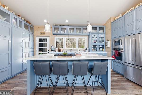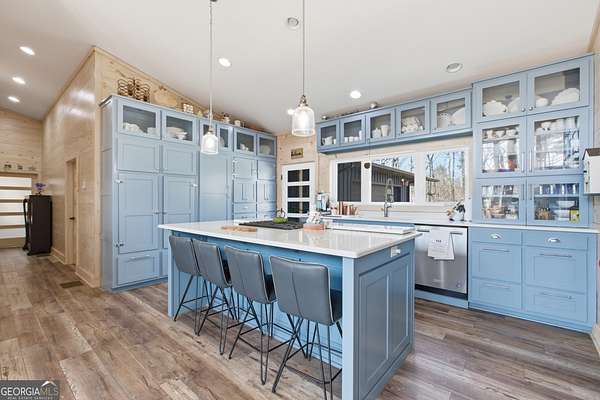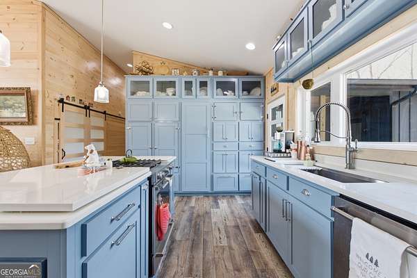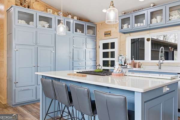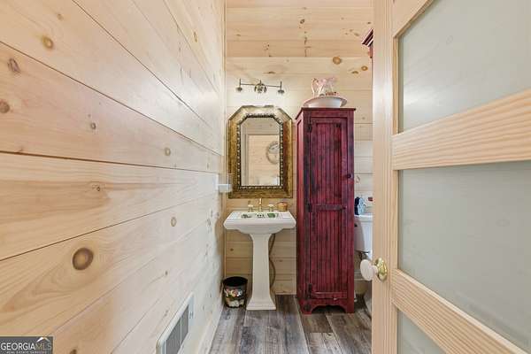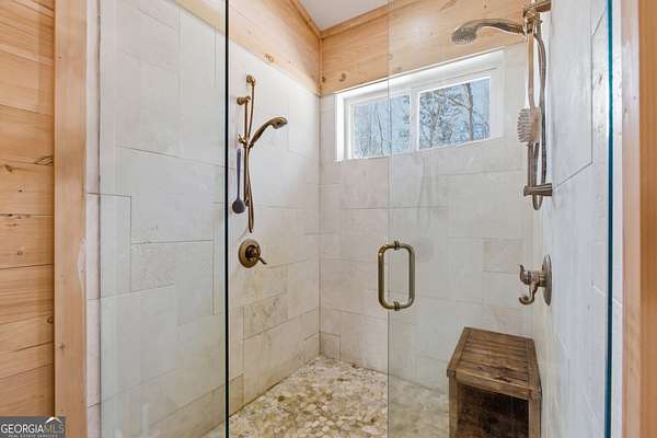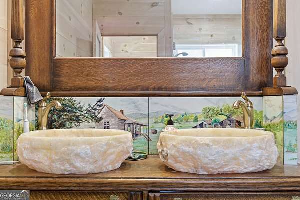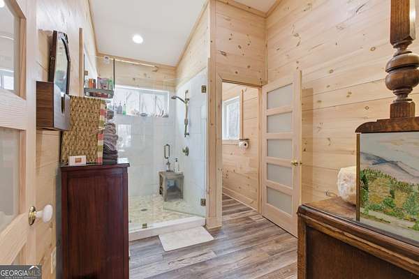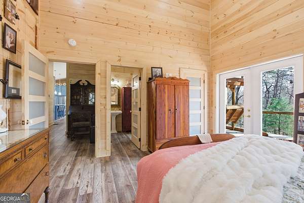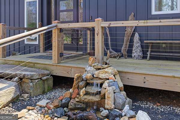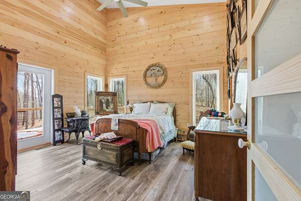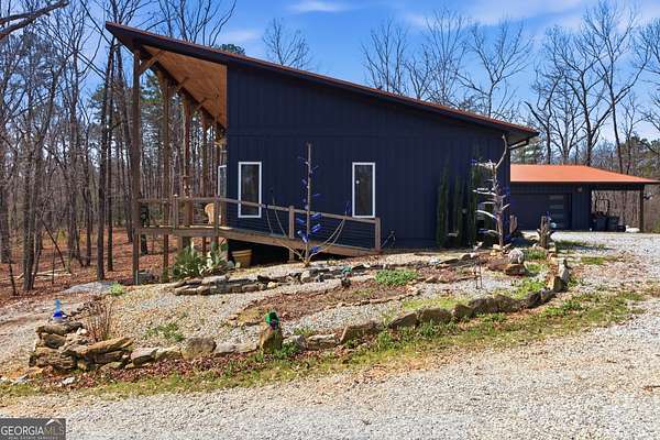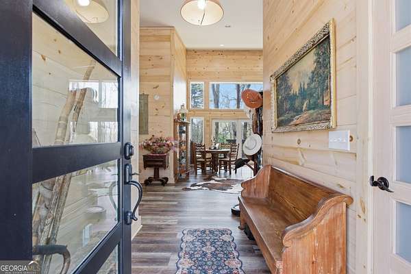 Exceptional custom built 3BR/3.5BA mountain home that was thoughtfully curated and designed sitting on 20 acres in northeast Georgia! Pickled pine walls and T & G throughout home! Open and airy floor plan that houses large kitchen with custom cabinetry, large entertaining island, quartz counters, SS KitchenAid Appliance package w/ double wall oven and gas stove. Kitchen overlooks the living space with 2 way gas fp and showcases the window wall to enjoy the views of the north Georgia foothills! TV Room/office share the other side of the gas fp. LVP flooring throughout home. Split bedroom floorplan where each bedroom has a private bath. Primary bedroom has large tile shower and double vanities. Enjoy the morning sun with the full length covered back porch, complete with ceiling fans and space for multiple relaxing locations. All stone steps and rock around the garden areas are all 200-year-old hand cut granite! Firepit space in backyard perfect for entertaining. Home has tankless water heater, whole house generator, and HVAC is filtered. Standing seam roof. Private drilled well. This is a special one of a kind custom home! Come and start living your best life in the Northeast Georgia Mountains!
