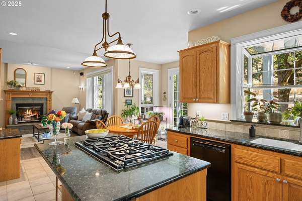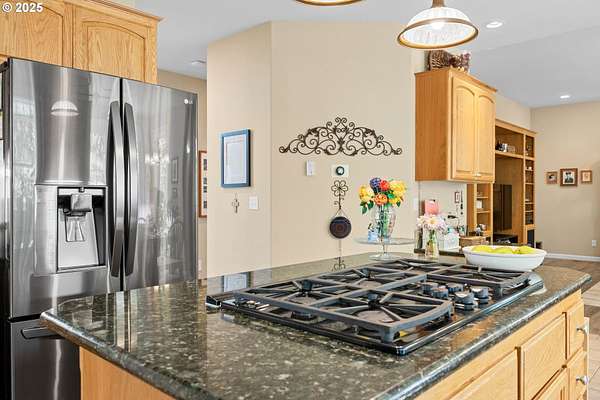 - Builtin Oven, Convection Oven, Cook Island, Cooktop, Dishwasher, Disposal, Double Oven, Down Draft, Gas Appliances, Granite, Island, Pantry, Plumbed For Ice Maker, Tile