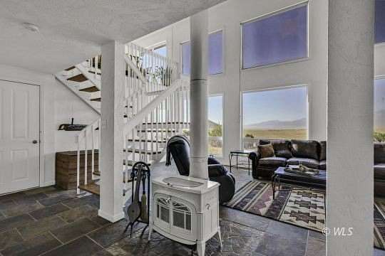 - Tile/Clay Wood (Hardwood), Vaulted Ceilings, Flooring Ceiling Fans, Jetted Tub, Skylights, Window Coverings, Wood Burning Stove, Flooring