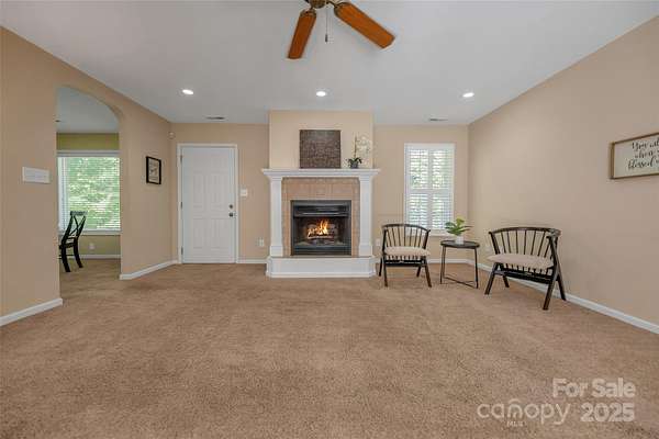 Discover the comfort and craftsmanship of this custom-built, all-brick home, perfectly situated at the end of a private shared drive on more than one acre of peaceful, wooded land. Designed for both quality and comfort, this one-level home offers a rare blend of privacy, thoughtful accessibility features, and timeless style. Step inside to find a welcoming floor plan with freshly cleaned carpets, neutral paint tones, and a sense of calm that only a well-built home can provide. The spacious living room features a propane gas log fireplace, ideal for cozy evenings, and large windows that fill the space with natural light and tranquil views of the property. The kitchen and dining area are functional and inviting, with a refrigerator included for convenience. Every detail of this home was built with long-term comfort in mind-from ceiling fans throughout to the solid feel of true brick construction on a crawlspace foundation. The primary suite includes a step-in shower and grab handles for stability and peace of mind, while additional accessibility features-such as a custom-built ramp in the garage-ensure easy, stair-free living. Outside, enjoy the serenity of your surroundings from the covered front porch, or make use of the backyard storage building for tools, hobbies, or extra space. The property runs on well and septic, offering independence and low utility costs. This is more than a home-it's a retreat, built with care and designed for ease, privacy, and lasting quality.