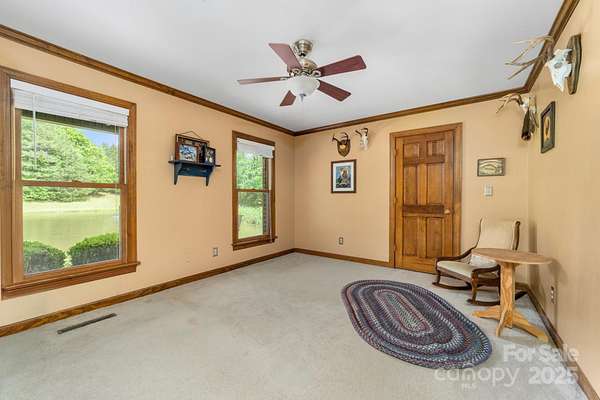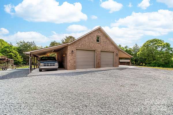 Private 6.1-acre retreat with endless lifestyle potential! This full-brick ranch overlooks a beautiful pond and features 3 beds, 2 baths, a flex/office with French doors, a spacious living room with built-ins, and an inviting kitchen/dining area. Enjoy stunning views from every bedroom and peaceful evenings on the front porch swing. With multiple outdoor living spaces - a screened porch, back deck, and a front porch overlooking the pond - this home delivers a true retreat feel. You'll also appreciate the convenience of the attached 2-car garage. The property is loaded with functional extras, including a tractor carport, RV hookups, an efficient wood burner for heating the home and/or workshop, several wood storage areas, and more. An oversized workshop with bathroom and upstairs space is perfect for car enthusiasts, hobbyists, or a dedicated workspace. Open acreage offers ideal potential for horses or farm use, with plenty of room for equipment, tractors, or construction needs. Beautiful garden areas and unbeatable pond views complete the picture.