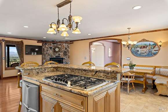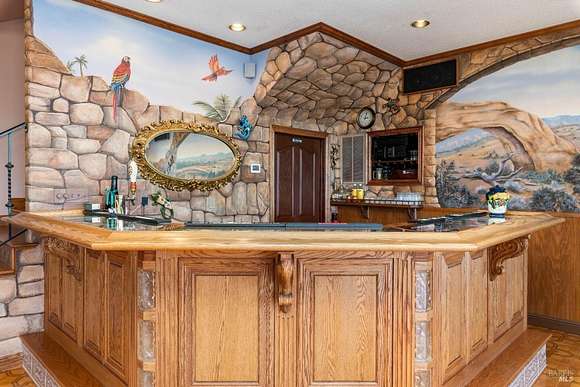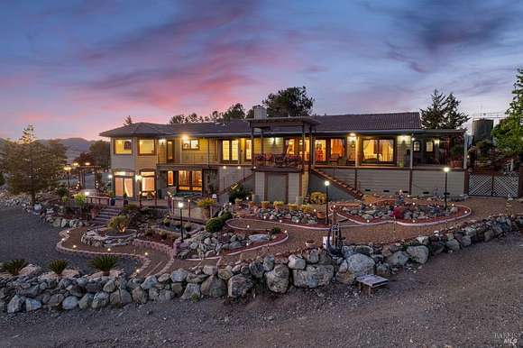 Shared Lake Access Option at Park approximately 1/2 mile near. Serenity Point Lakeview Home, North Lakeport close to town yet quiet & private, on 6 gently sloping acres. Panoramic views of lake & mountains offer a breathtaking spectacle. Wildlife abounds! Large 4,132 sf, custom home, 3BD, a Nursery, & an Office, 3BA, + 2 Partial Baths. Primary Suite approx. 25' x 16' flows into lavatory, double sinks with granite counters, wraparound glass shower plus walk-in closet. East wing has a second large & one smaller bedroom with gorgeous Jack & Jill bathroom with shower. Stunning views of Clear Lake, Mt. Konocti, Lakeport & Scotts Valley. Dining room hosts sculpted ceiling and is 13' x 14' with French doors to covered deck. Kitchen with Breakfast Nook is open to Family Room with cozy gas fireplace. Laundry has granite counter & Deep Stainless sink with storage galore. Central vacuum & Alarm System on Both levels. Three individual heat & air conditioning regions. Downstairs Gaming & Party Room of approx. 838 sf, features 360-degree Panoramic Mural by professional local artist, 16' full wet bar & slider to lower deck patio & hot tub. Detached 3-Car Garage, 1-Car Attached Garage, plus 20 x 40 RV sized Outbuilding. Five minutes to Sutter Hosp.