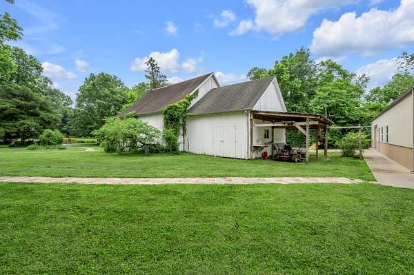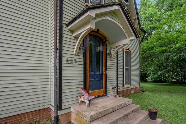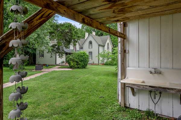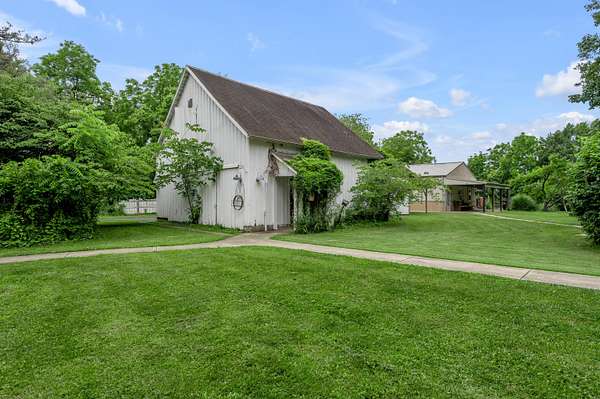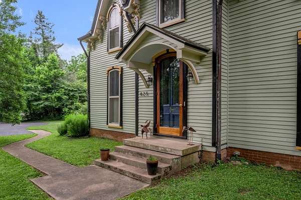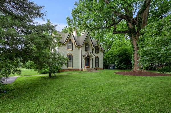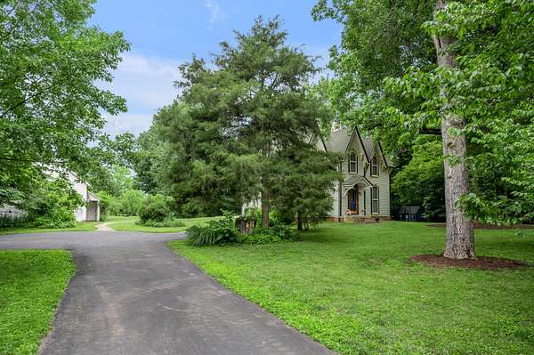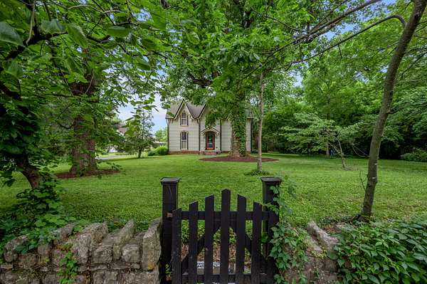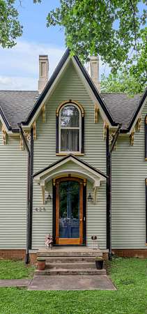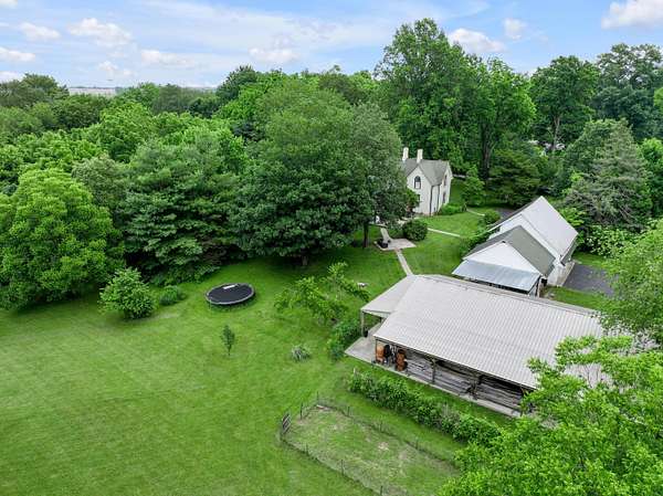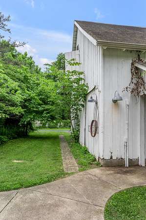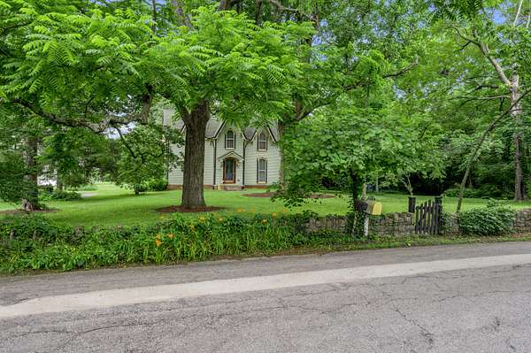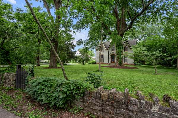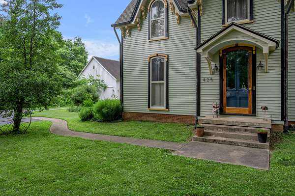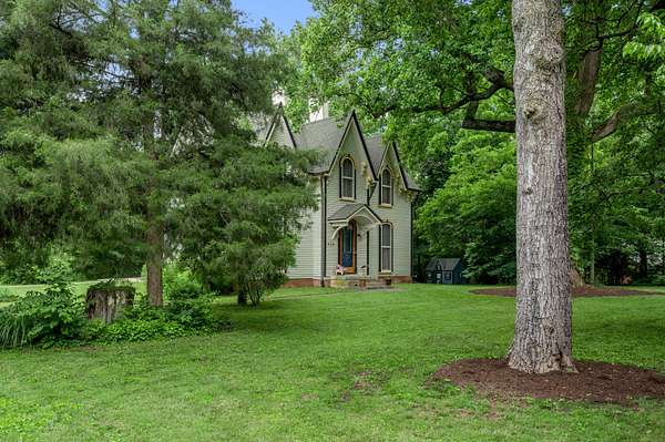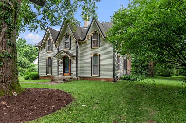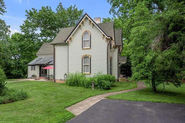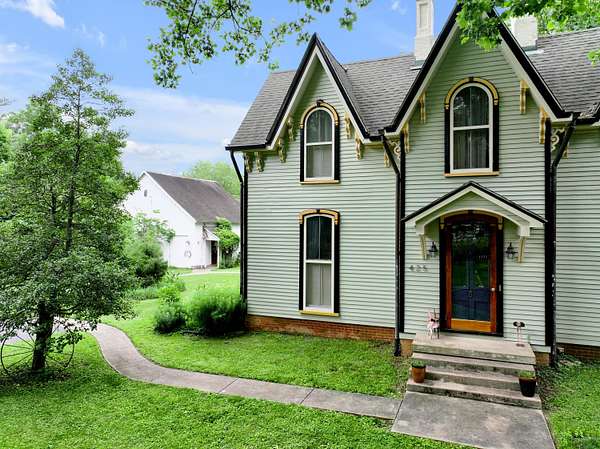 American Gothic beauty in the heart of horse country in storybook, Midway Kentucky. This ICONIC home on 2acres sits across from the Holly Hill Inn and 2mins from Hallmark Movie quaint downtown Midway. Updated for modern living blending the historic with thoughtful updating. Open floor plan with spacious great room, gourmet kitchen and butler's pantry. Soaring ceilings with floor to ceiling windows that flood the space with soft natural light filtered through the old growth trees. Original heart pine floors beautifully preserved and many original features remain throughout the home. Full bath and a bedroom on the 1st floor. Primary suite on the 2nd floor with tile shower and large bath. Second en-suite bedroom on the 2nd floor. Copper gutters and copper roof on the seamless side porch addition. The barn is converted to a 3-car garage with tons of extra storage above. Tucked behind the garage is an 1800 sq. ft auxiliary building currently used as a wood shop. The building with covered porch and full bathroom offers enormous upside potential for whatever your dreams or hobbies are made of. Don't miss this rare opportunity to own a piece of Midway's history.