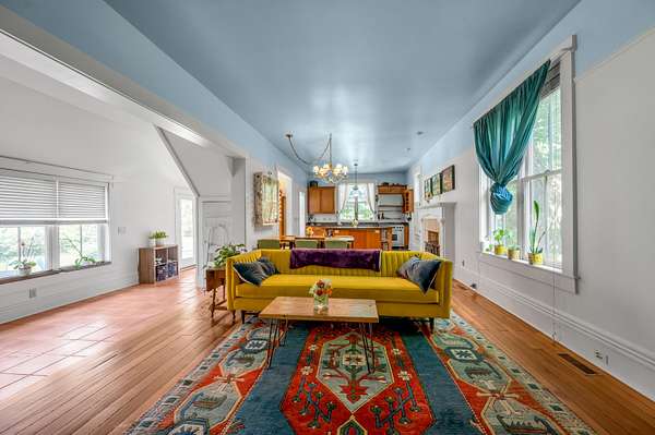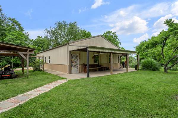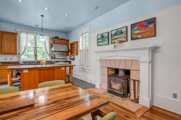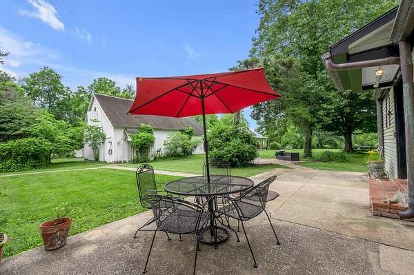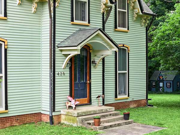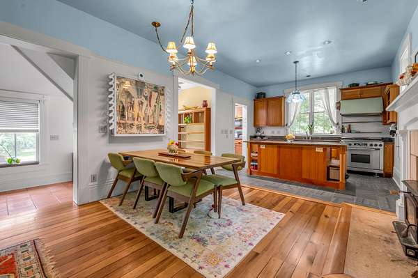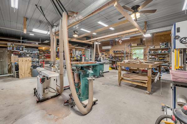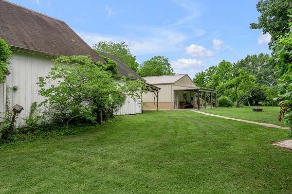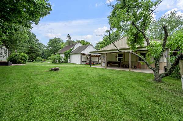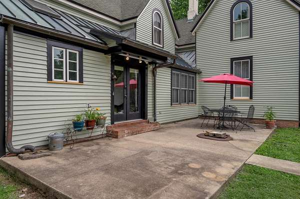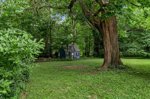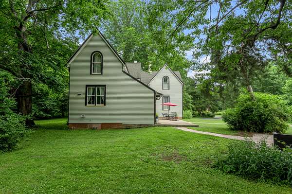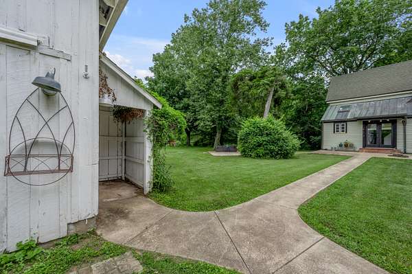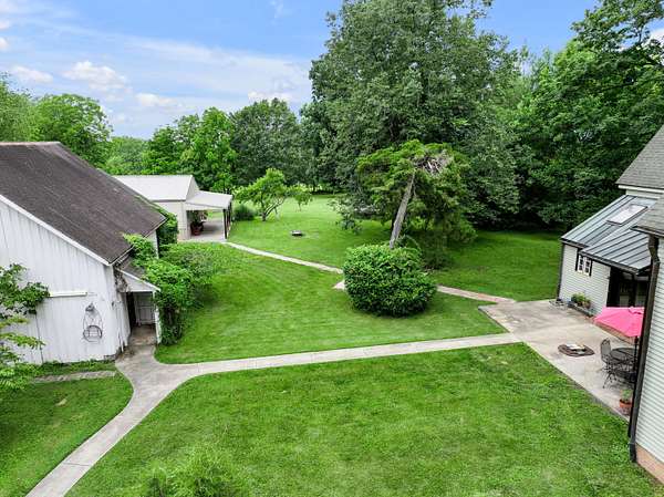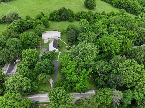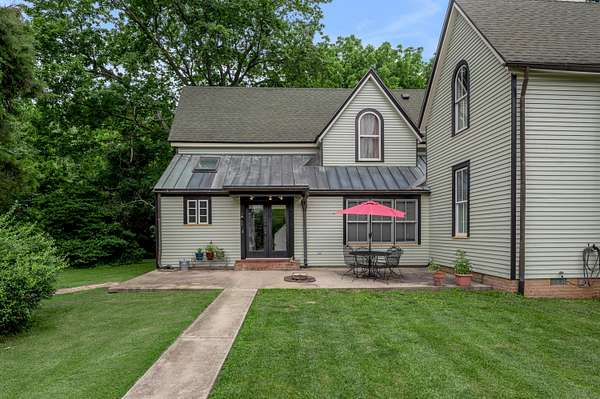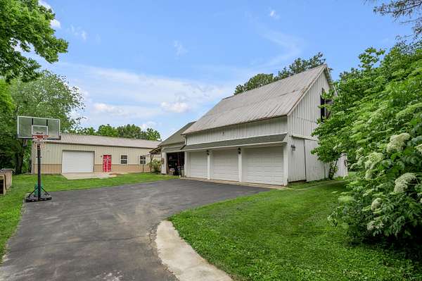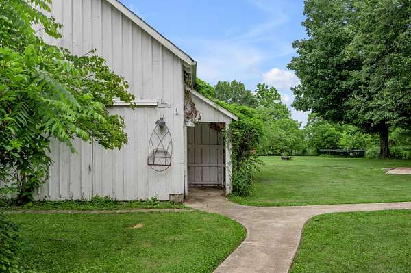 American Gothic beauty in the heart of horse country in storybook, Midway Kentucky. This ICONIC home on 2acres sits across from the Holly Hill Inn and 2mins from Hallmark Movie quaint downtown Midway. Updated for modern living blending the historic with thoughtful updating. Open floor plan with spacious great room, gourmet kitchen and butler's pantry. Soaring ceilings with floor to ceiling windows that flood the space with soft natural light filtered through the old growth trees. Original heart pine floors beautifully preserved and many original features remain throughout the home. Full bath and a bedroom on the 1st floor. Primary suite on the 2nd floor with tile shower and large bath. Second en-suite bedroom on the 2nd floor. Copper gutters and copper roof on the seamless side porch addition. The barn is converted to a 3-car garage with tons of extra storage above. Tucked behind the garage is an 1800 sq. ft auxiliary building currently used as a wood shop. The building with covered porch and full bathroom offers enormous upside potential for whatever your dreams or hobbies are made of. Don't miss this rare opportunity to own a piece of Midway's history.