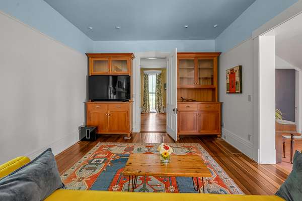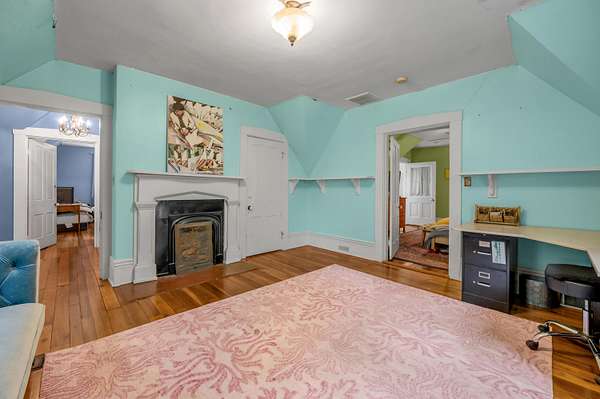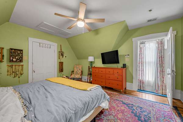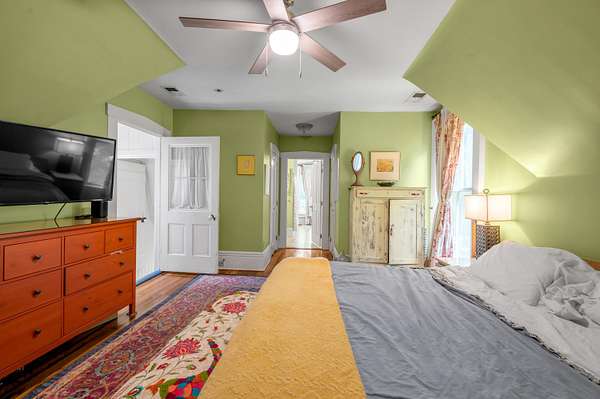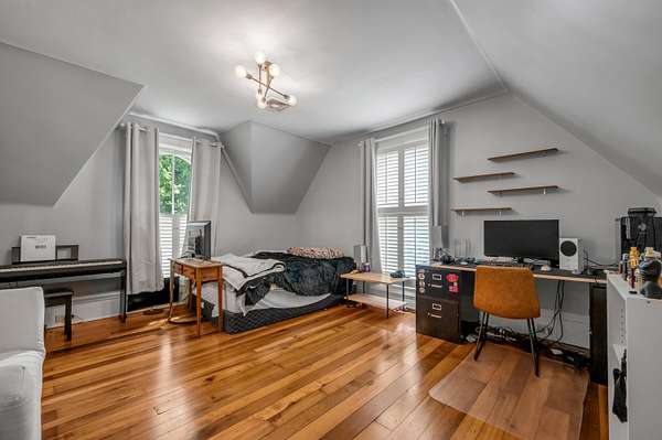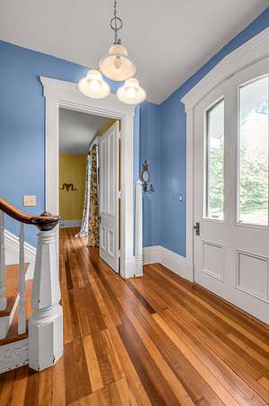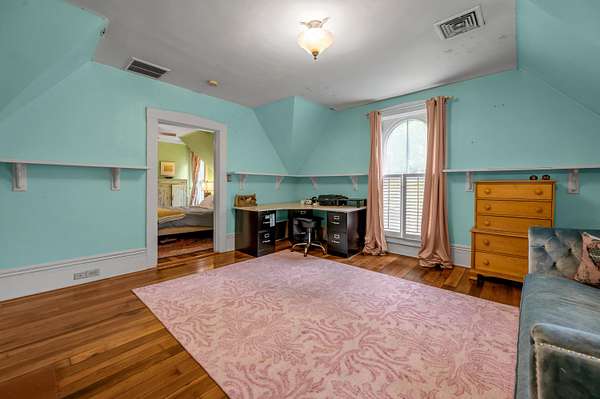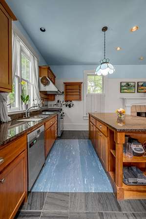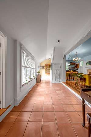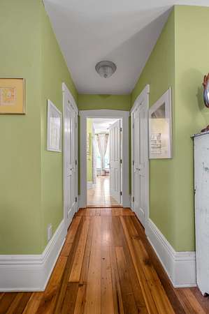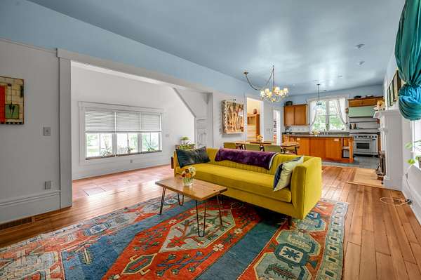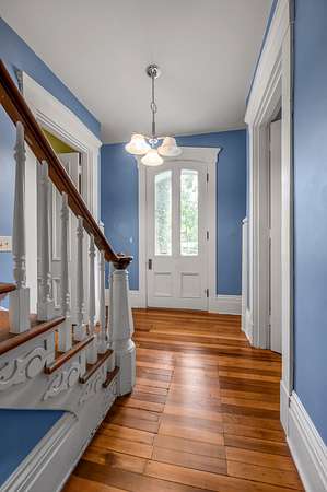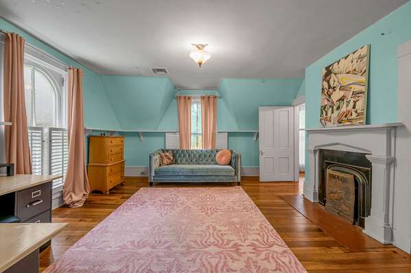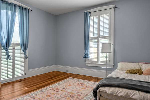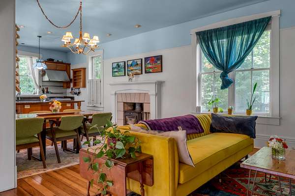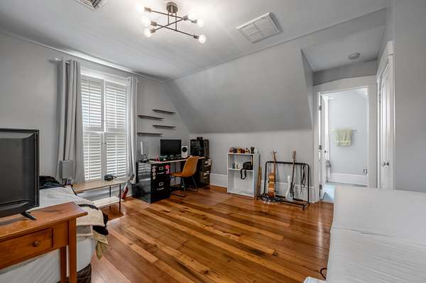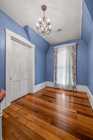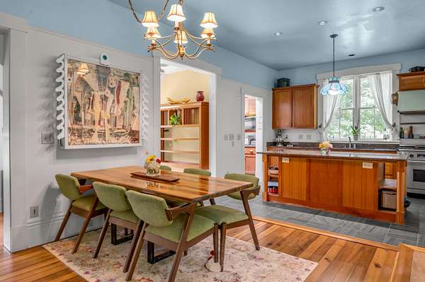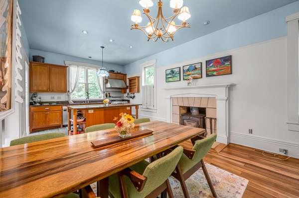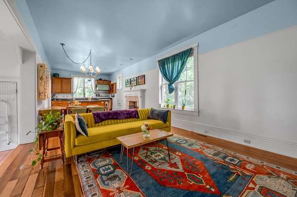 American Gothic beauty in the heart of horse country in storybook, Midway Kentucky. This ICONIC home on 2acres sits across from the Holly Hill Inn and 2mins from Hallmark Movie quaint downtown Midway. Updated for modern living blending the historic with thoughtful updating. Open floor plan with spacious great room, gourmet kitchen and butler's pantry. Soaring ceilings with floor to ceiling windows that flood the space with soft natural light filtered through the old growth trees. Original heart pine floors beautifully preserved and many original features remain throughout the home. Full bath and a bedroom on the 1st floor. Primary suite on the 2nd floor with tile shower and large bath. Second en-suite bedroom on the 2nd floor. Copper gutters and copper roof on the seamless side porch addition. The barn is converted to a 3-car garage with tons of extra storage above. Tucked behind the garage is an 1800 sq. ft auxiliary building currently used as a wood shop. The building with covered porch and full bathroom offers enormous upside potential for whatever your dreams or hobbies are made of. Don't miss this rare opportunity to own a piece of Midway's history.