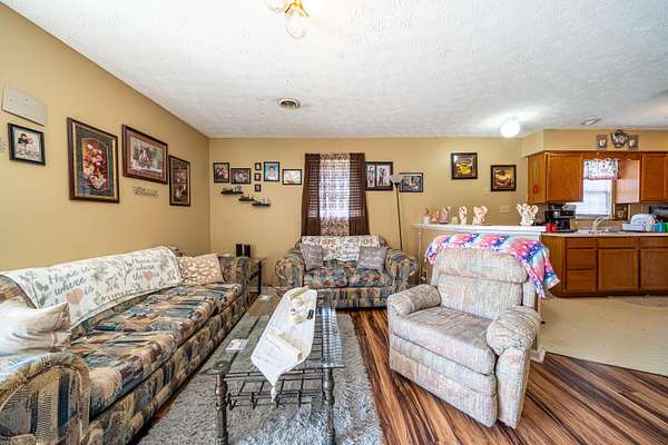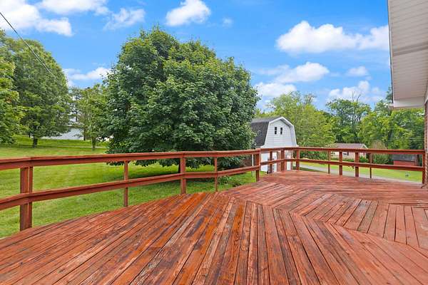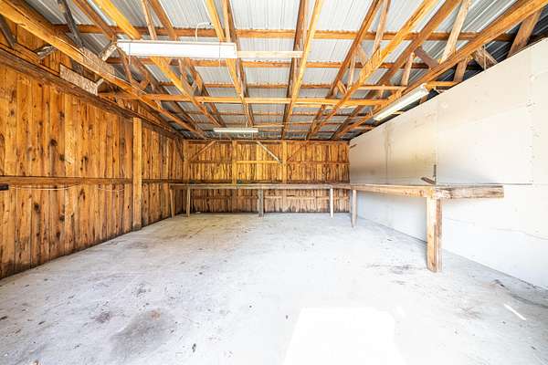 The ''WOW'' factor... this recently renovated brick ranch on a basement is a stunner for sure! Step into the expanded Living room that opens into the newly remodeled Kitchen and Dining Area and be amazed with the choice of neutral luxury vinyl plank flooring throughout the first level. The updated kitchen features stark white Shaker Style cabinetry ready for your appliances. The first floor features 3 bedrooms and 2 full baths and 1/2 bath in the garage. Large utility room off the garage to stop and unload your shoes/keys/coats before entering the kitchen. The massive family room is adorned with vaulted ceilings and warm woods to bring a cozy/homey feeling to any gathering. The walkout basement features 1 or 2 extra bedrooms-you choose. There is a 2nd kitchen in the basement as well. Also in the basement is a nice sized family/den area with freshly painted wood walls would be great for an in-law suite or any hobby you can dream of. Basement waterproofing(with transferable warranty) completed in 2025.Two Income producing residential rentals also brings in $950/month. Large 3 bay barn/shop will also allow for tinkering with the hobbies of any sorts. This is the whole package