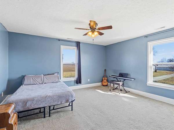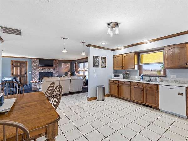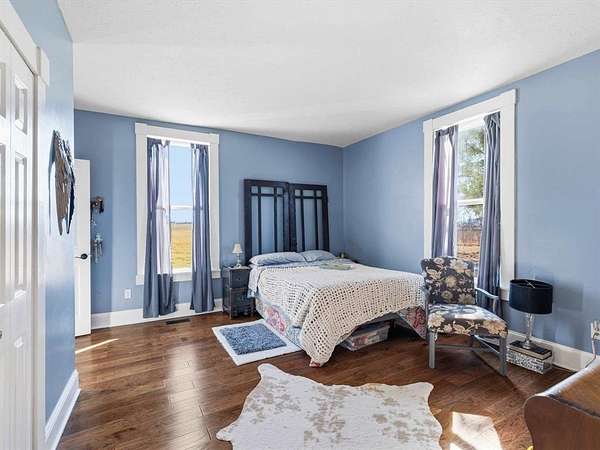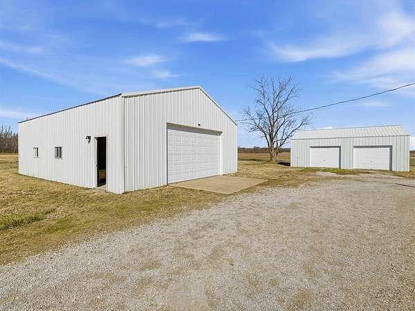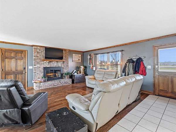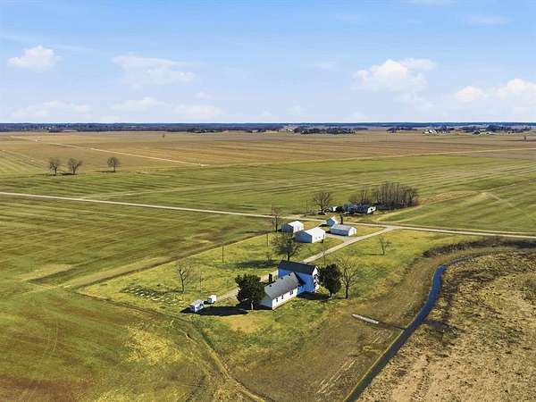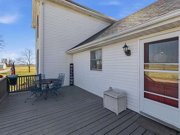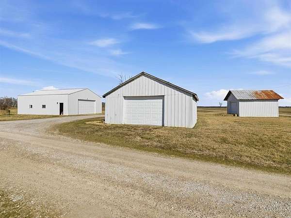 Classic charm meets wide-open country living! This 3 bedroom, 2 bath saltbox home sits on 3.26 scenic acres and offers over 2,300 sq ft of comfortable living space surrounded by peaceful farmland views. The inviting two-story façade and covered front entry welcome you inside to a spacious living room featuring warm engineered hardwood floors and a stunning brick fireplace as the focal point. The layout offers generous room sizes, abundant natural light, and flexible living space perfect for everyday life or entertaining. Enjoy morning coffee or evening sunsets from the deck overlooking the property. The attached 2-car garage provides convenience, while the long gravel drive offers ample parking. Need space for hobbies, equipment, or a business? This property delivers with three detached buildings measuring 24x34, 30x40, and 24x30 — ideal for workshops, storage, livestock, or recreational use. Whether you’re dreaming of a mini-farm, home-based business, or simply room to spread out, this property offers endless possibilities. If you’ve been searching for acreage, outbuildings, and a move-in ready home with character — this is the one.