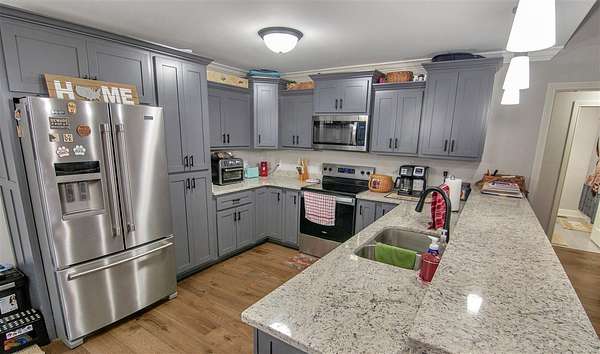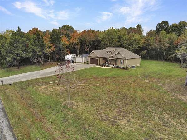 Est $2,054/moLike new construction built in 2024 sits on 3.08 acres with trees on 3 sides of the property. 2 car attached garage with an added detached 14x40 workshop with a loft, ceiling fan, 50 amp electric plug for a camper or travel trailer, and a garage door with a widened driveway for parking is an added bonus to this property. Three bedrooms, 2 baths with stainless kitchen appliances, hardwood, tile and carpet. An added detached 14x40 workshop with a loft, ceiling fan, 50 amp electric plug for a camper or travel trailer, and a garage door with a widened driveway for parking is an added bonus to this property.