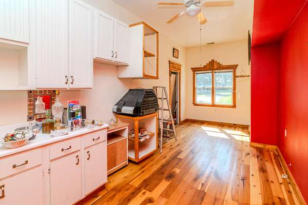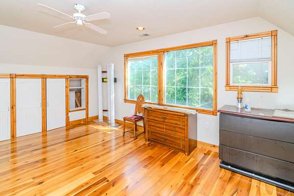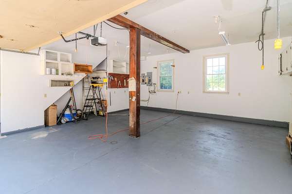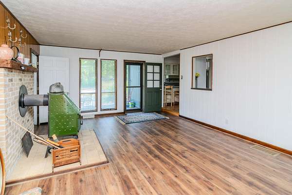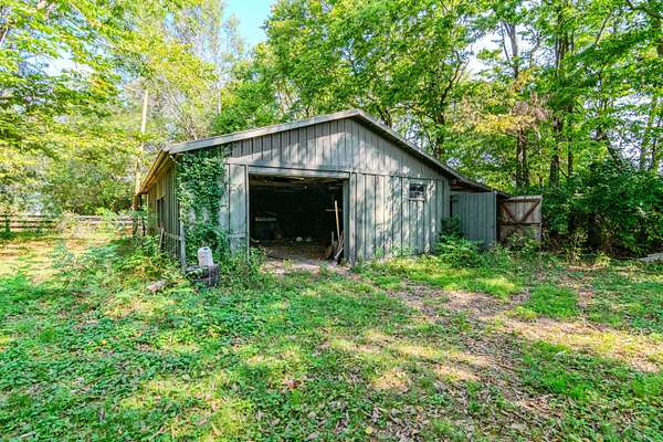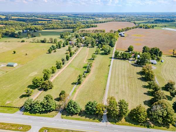 Welcome to 4250 Harrodsburg Rd-a private 10-acre farmstead ideally situated between Danville and Harrodsburg in Central Kentucky. This two-story home offers 3 bedrooms and 2.5 baths, including a spacious first-floor primary suite featuring a walk-in closet, antique fireplace, heated flooring in the private bath, and private bath. Freshly updated with new carpet and flooring throughout, the home blends historic charm with modern comfort. Inside, enjoy a large living room, cozy family room with a woodstove, a snack kitchen, and a bonus office space above the attached two-car garage. The front covered patio and full-length rear porch provide peaceful views of the fenced and gated property, complete with mature trees, open land, and a koi pond just outside the back porch. Additional features include a detached garage with a large apartment, a garden shed, and a barn-perfect for animals, storage, or hobbies. Property is fenced for horses and even has a paddock area. The home is serviced by a geothermal HVAC system in the basement and includes a newly installed water heater. A rare opportunity for flexible country living with ample indoor and outdoor space.