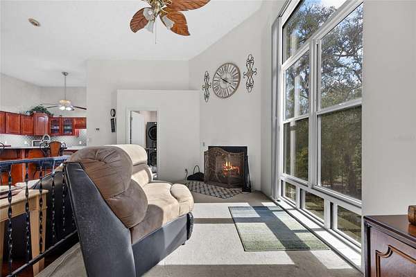 Nestled on more than 10 acres of serene riverfront land, this stunning property offers unparalleled natural beauty, privacy, and recreation. With a private dock on the Suwannee River, you'll enjoy peaceful water views, abundant wildlife, and the gentle sounds of nature right from your doorstep. Located right next to two boat ramps and near Ginnie Springs. This property is a dream for boating, fishing, and spring lovers alike. Recent updates include a new roof, new septic system, and updated hot water heater. This all block home offers just over 2,900 square feet of living space, featuring 3 bedrooms, 2.5 baths, a spacious laundry room, a large storage room, a two-car garage, and an updated kitchen with plenty of storage. Inside, you'll also find high ceilings in the main living area and large windows with river views. An elevation certificate is already in place for added peace of mind. Enjoy abundant wildlife, spacious land, and the perfect blend of comfort and tranquility in this riverfront retreat. Whether you're relaxing by the river on your private dock, exploring the outdoors, or hosting family and friends, this private retreat blends comfort with endless recreation. With its tranquil setting, modern upgrades, and unbeatable location right on the Suwannee River, this property is the ultimate sanctuary.
