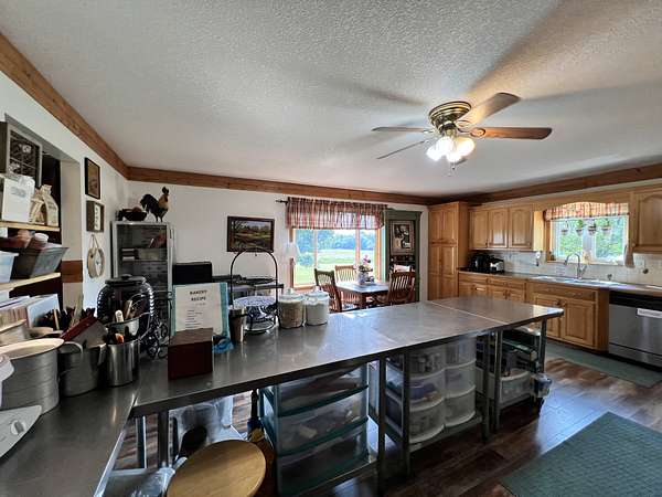 Welcome to this rare 21-acre+ homestead located at the end of a quiet country road in Jamestown, TN, surrounded by beautiful pasture, woods, and a year-round spring-fed stream. Built by Mennonite craftsmen, this spacious 6-bedroom, 3-bath ranch-style home offers 3,448 sq ft of finished living space and privacy in every direction. The main level features 3 bedrooms, 2 baths, a large living room, and a chef's dream kitchen with commercial-grade appliances, licensed for food service. The fully finished lower level has 3 additional bedrooms, a second kitchen, full bath, family room, separate laundry, and a private entrance--currently operating as a successful bed & breakfast. Outbuildings abound, including a massive 98x30 insulated building with a poured concrete floor, 200-amp electric, water, and a loading dock--previously used for a hydroponic operation with pre-set lighting in place. A second 30x40 pole barn is ideal for hay and equipment storage. There's also an attached oversized covered carport, an additional tractor shed, and a tool shed on the second parcel. The land is completely fenced and cross-fenced into four sections, offering a mix of open pasture and wooded areas--perfect for horses or rotational grazing. A year-round creek winds through the lower section of the property. Enjoy peaceful porch sitting, sweeping country views, and a property that's ready for homesteading, income production, or multi-family living. Located less than 15 minutes from town, 20 minutes to East Fork Stables, and close to Honey Creek trail access into Big South Fork National Park, this is the kind of property that rarely comes available. Property is being sold AS-IS. Two cabins DO NOT convey.